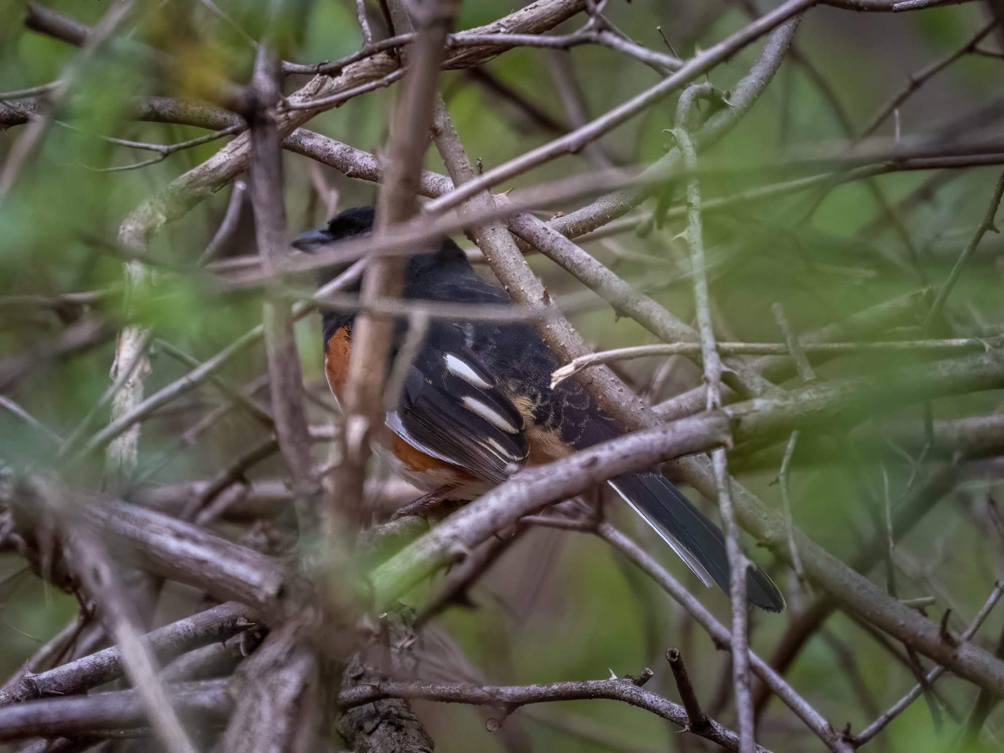 Bluebird, Brown-headed Cow Bird, Common Grackle, a shy Eastern Towhee, Yellow-rumped Warbler, Dark-eyed Junco, Mourning Dove,