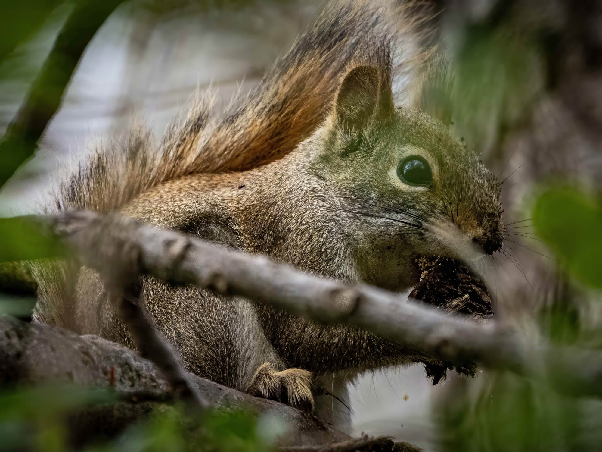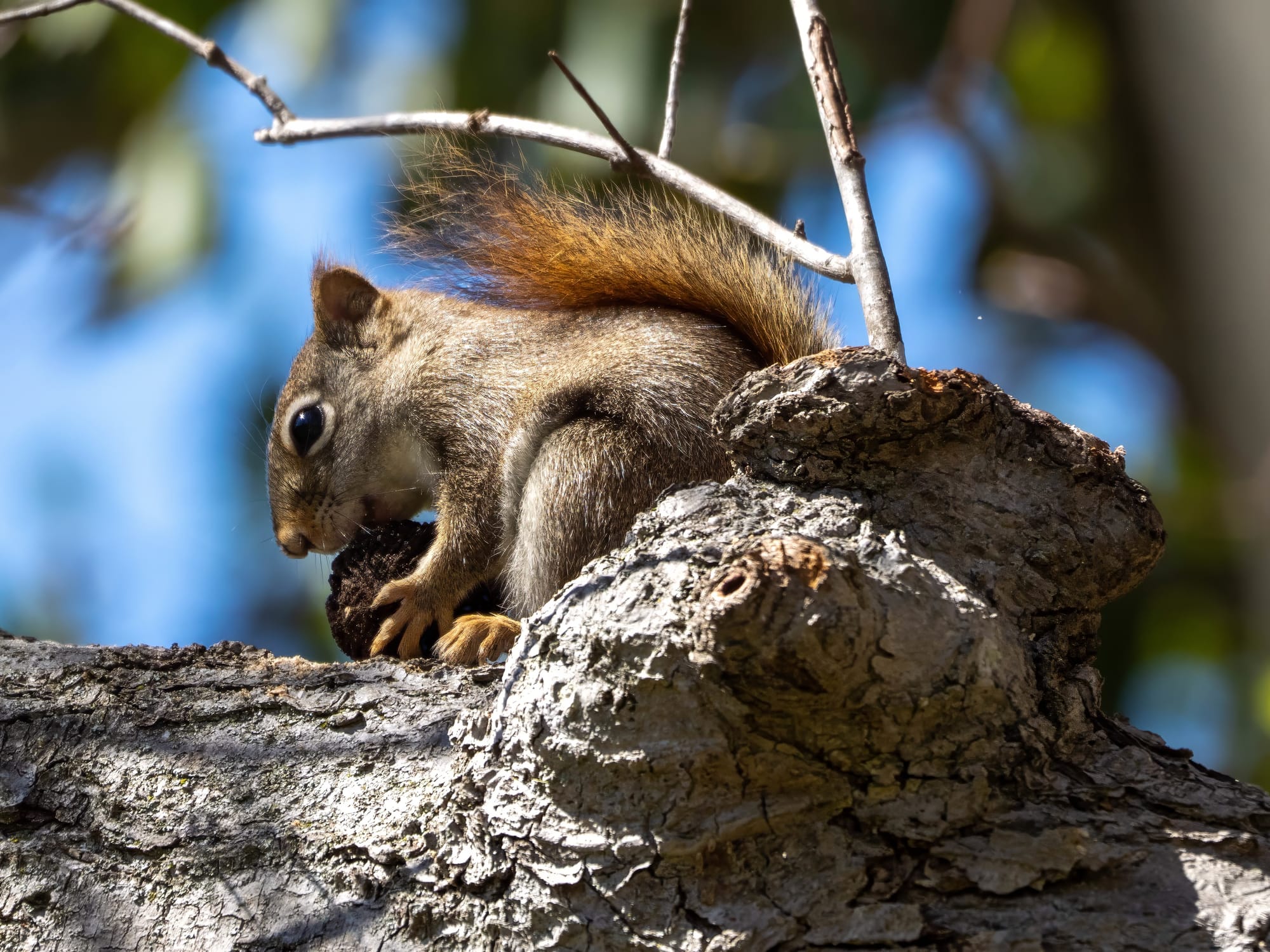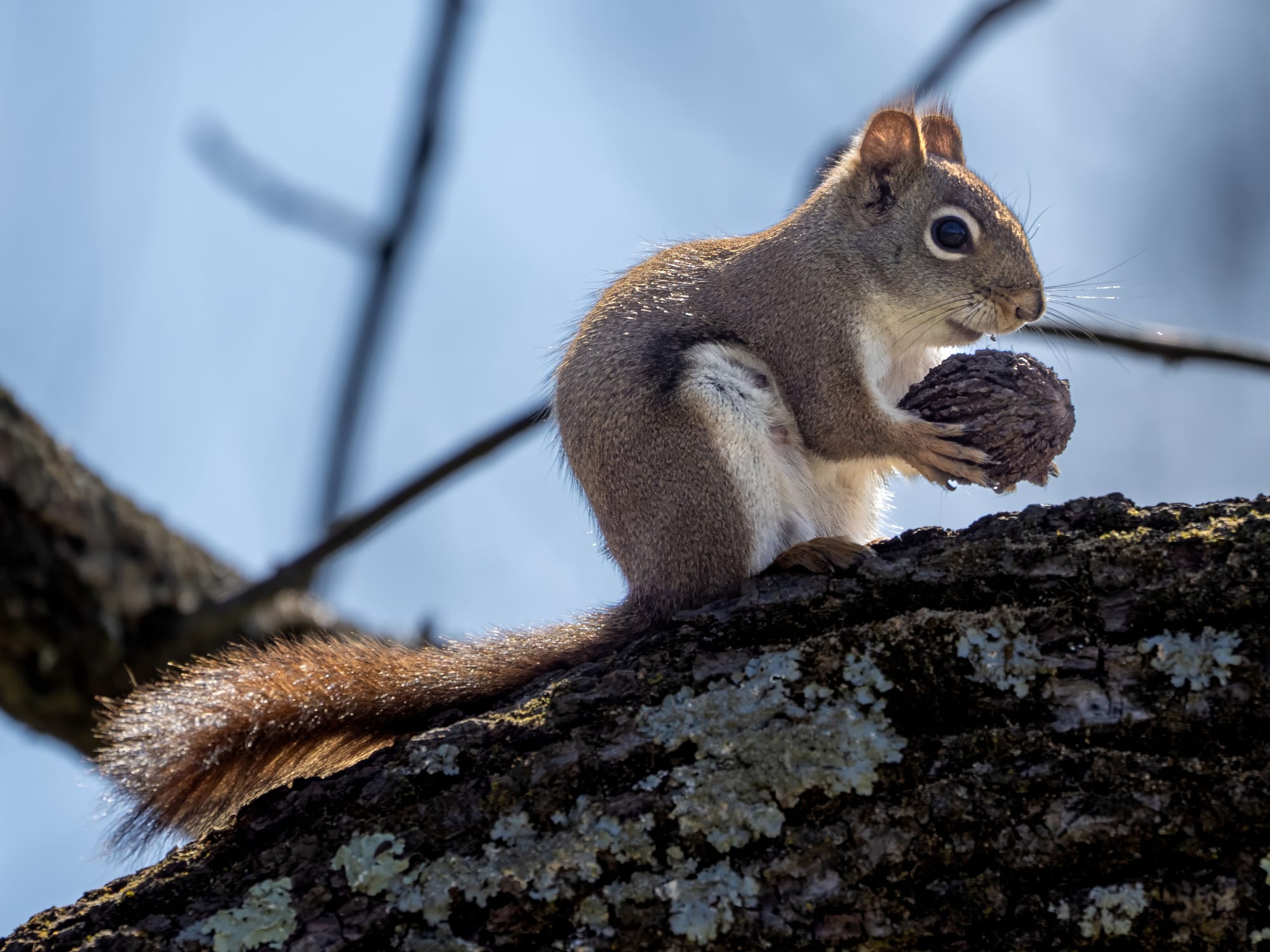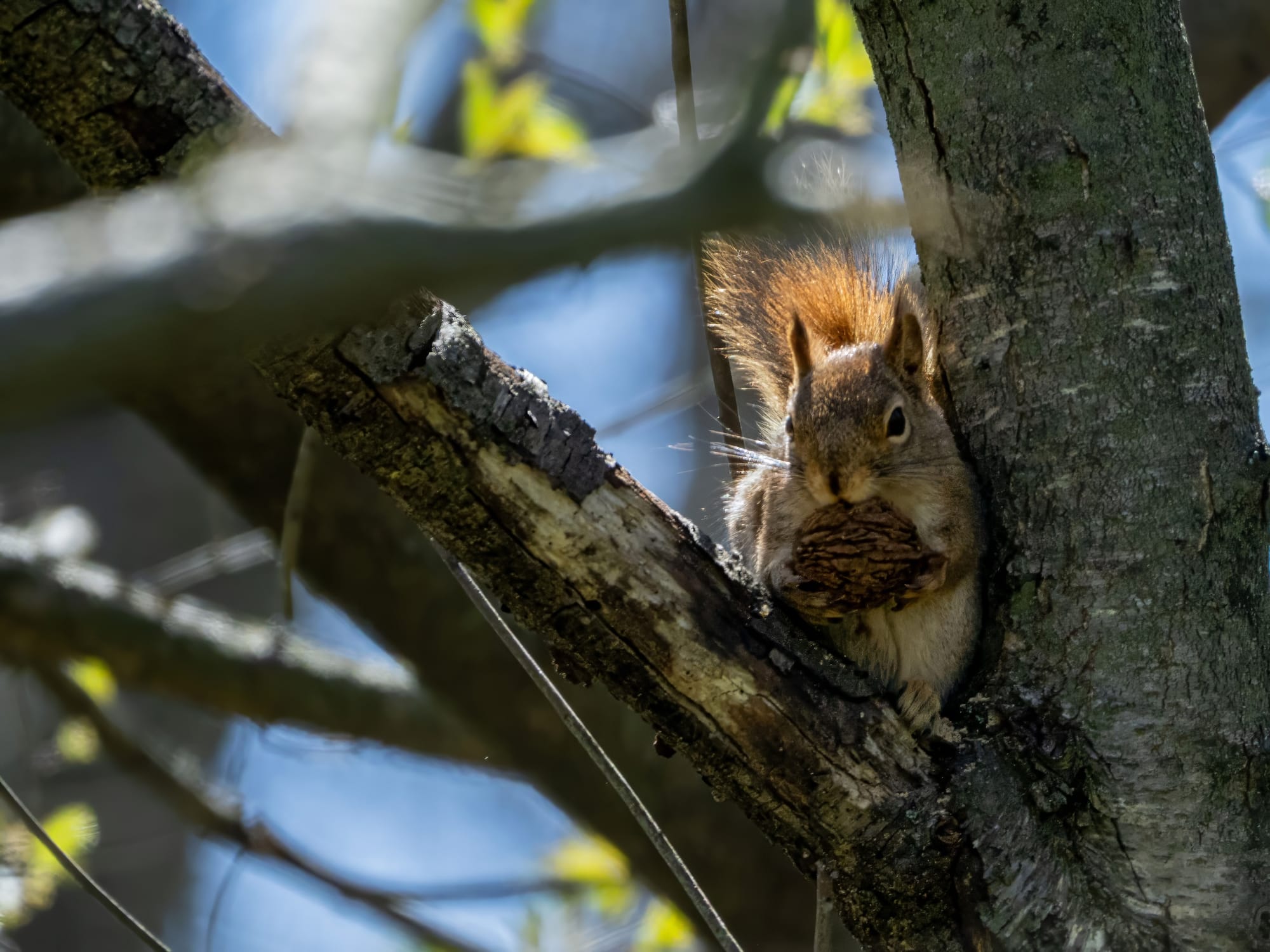 The red squirrels still have plenty of last season's black walnuts