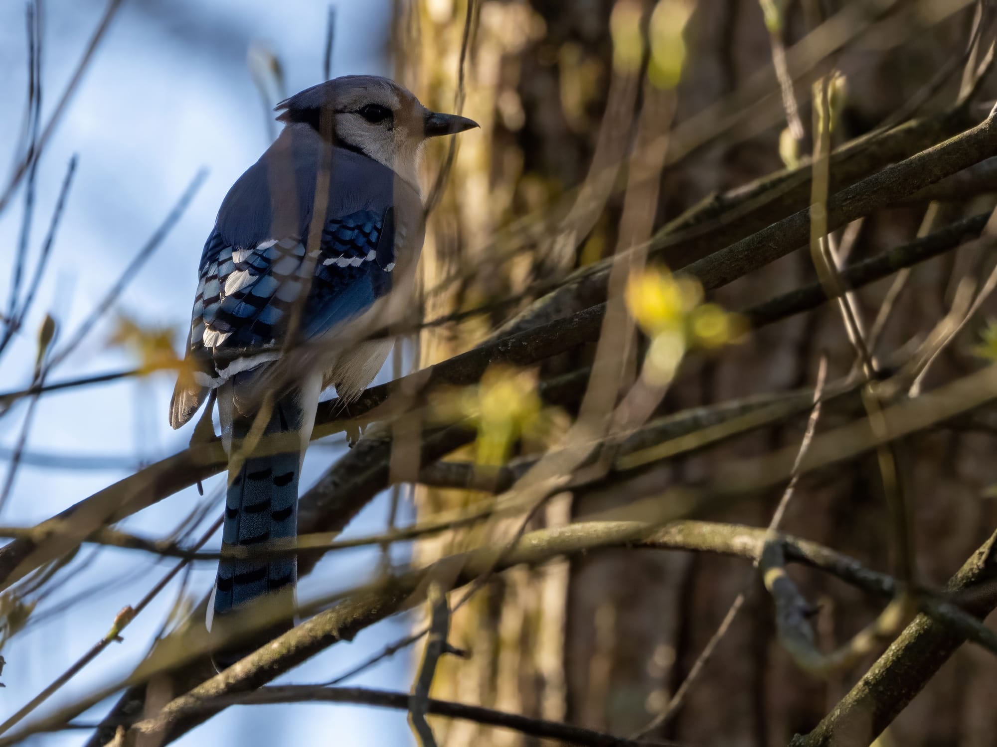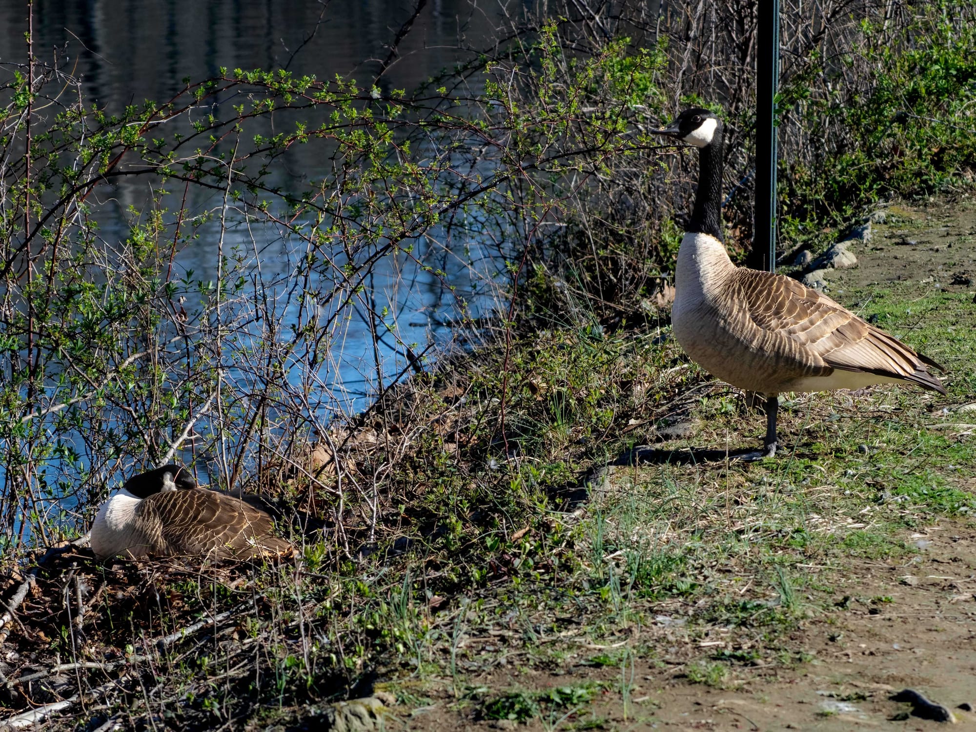 Blue Jay, Pair of nesting Canada Geese, last year's Green Heron nest doesn't look like anyone has shown up yet. Song Sparrow, Cardinal, and a Hermit Thrush