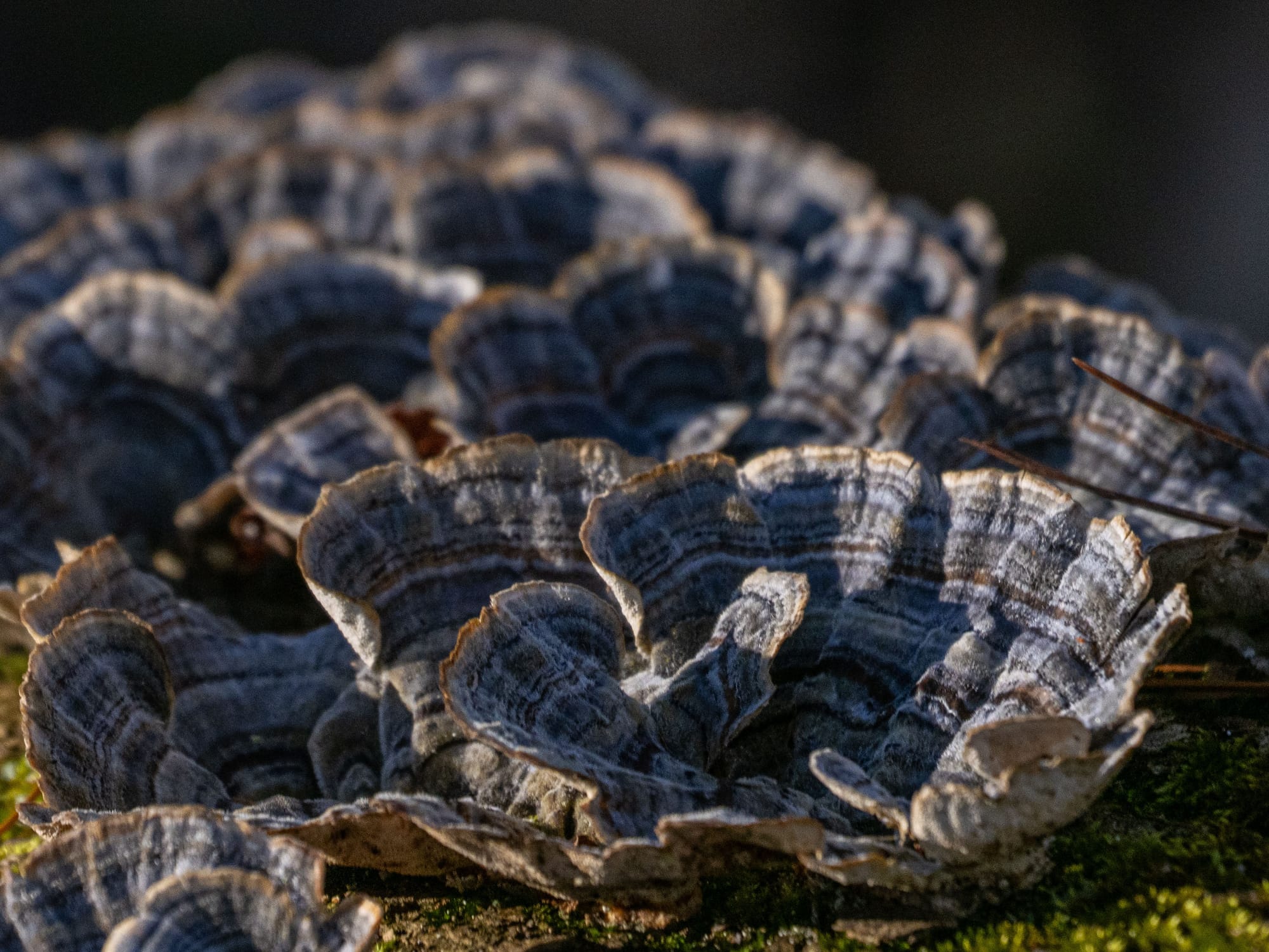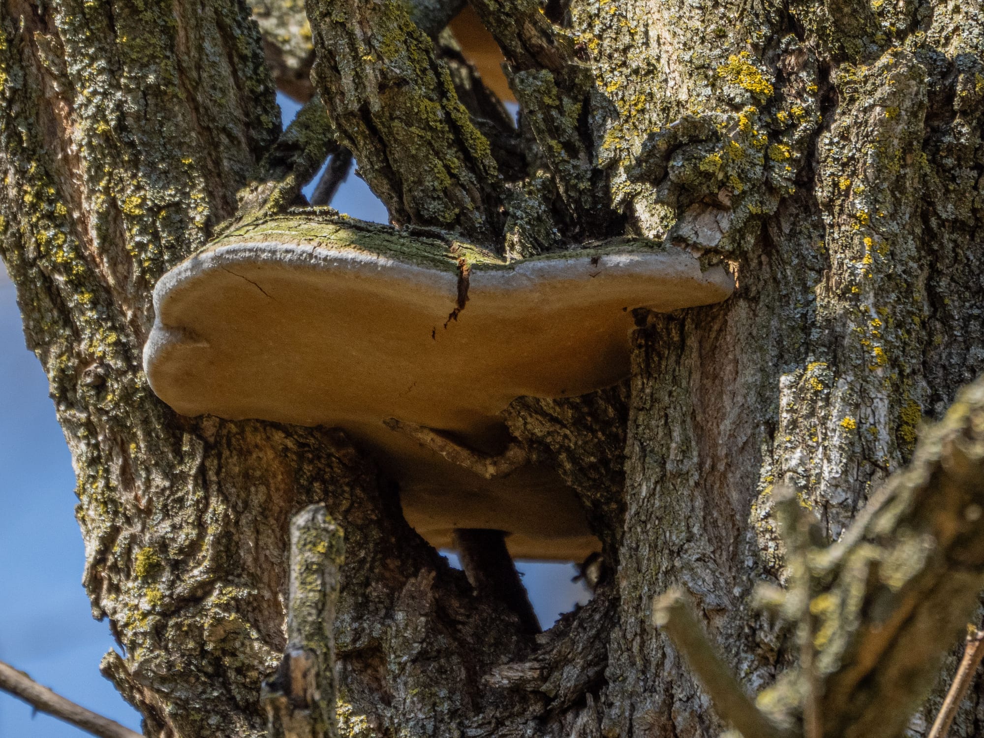Cracked Cap Polypore growing on and around a Locust tree, Turkey Tail, Water Strider