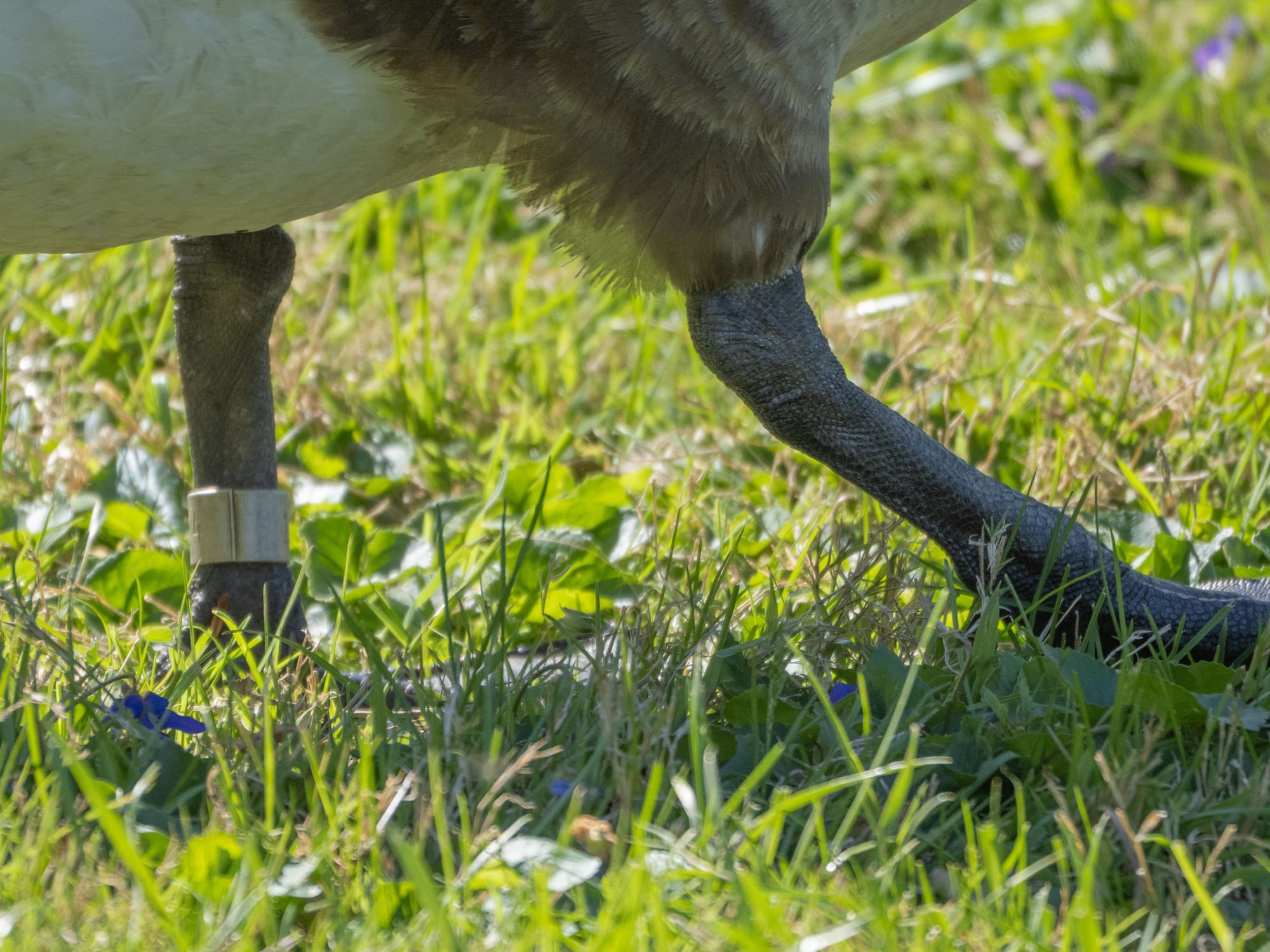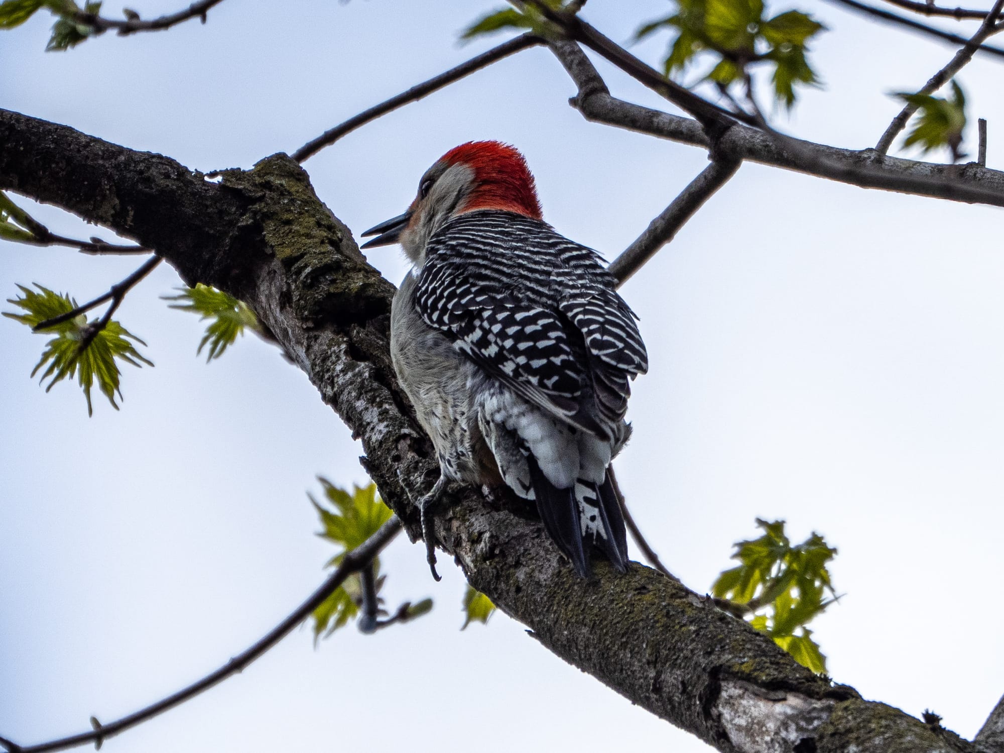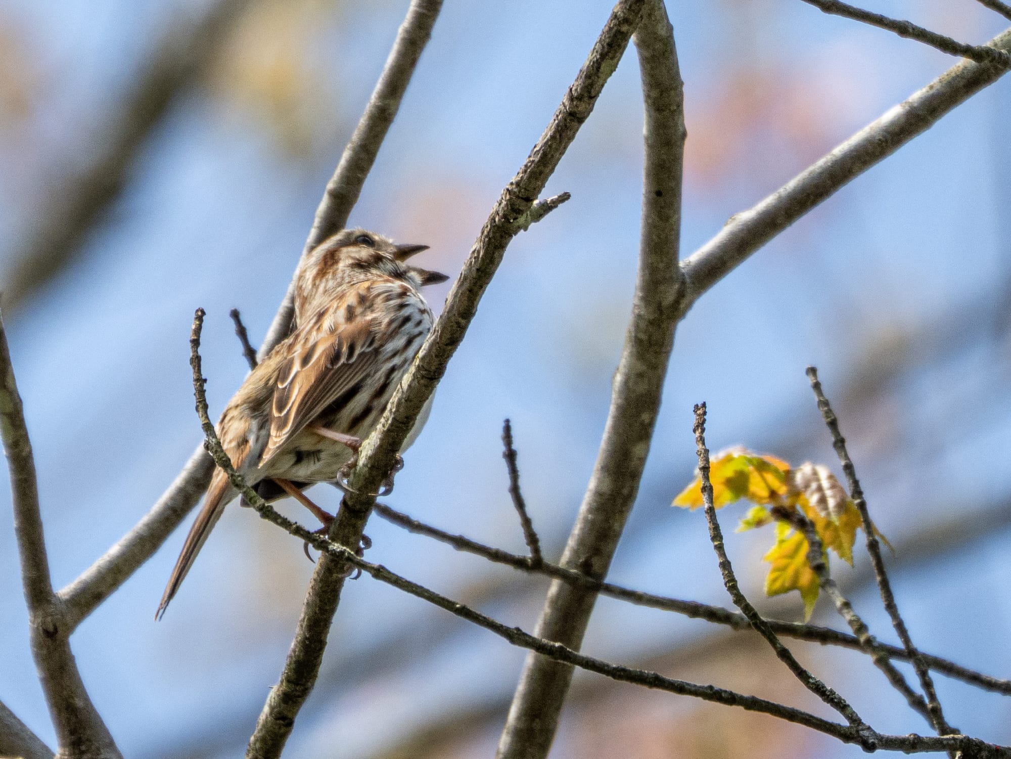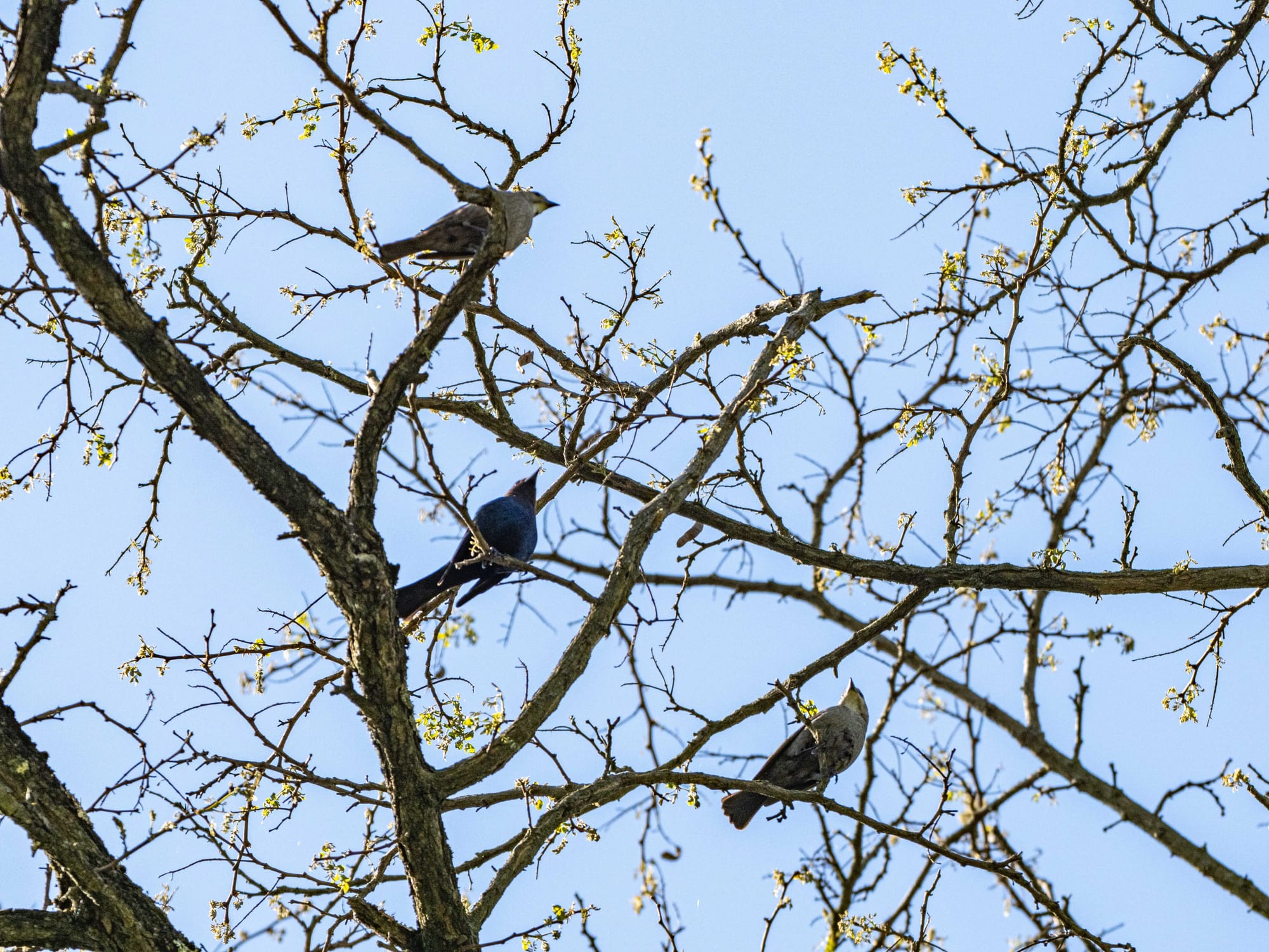 Red-bellied Woodpecker, Nuthatch, Canada Goose sporting a bird band, Brown-headed Cowbirds, Song Sparrow