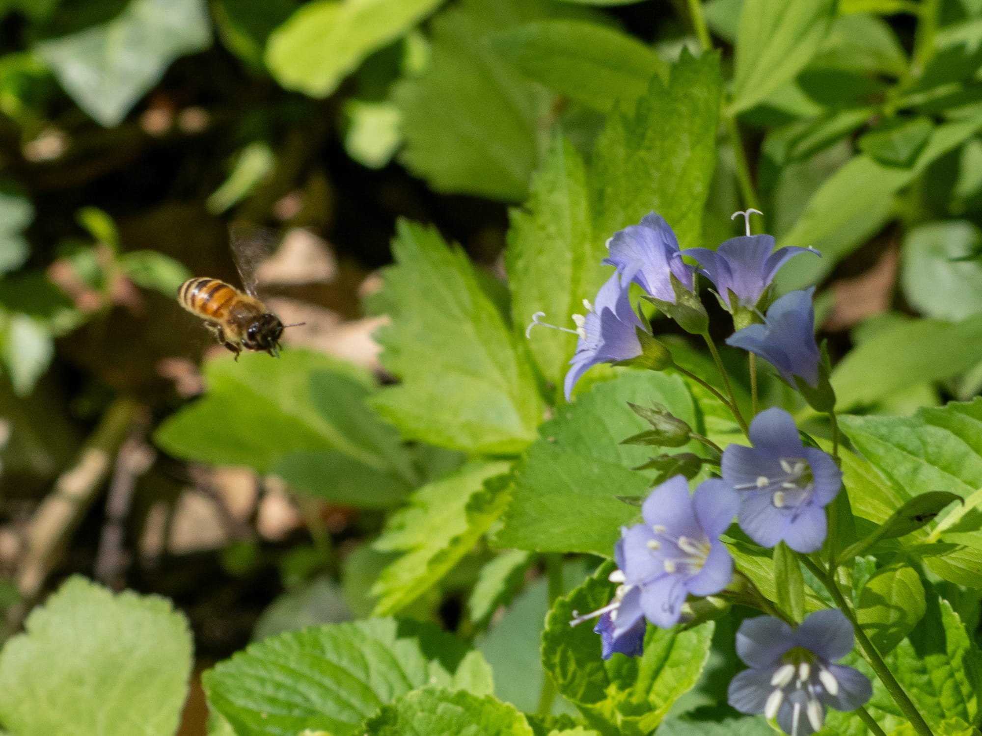 JAck-in-the-Pulpit, Trout Lily seed capsules, Mayapple flower, Dandelion with bee, Western Honeybee visiting Jacobs Ladder, Buttercup