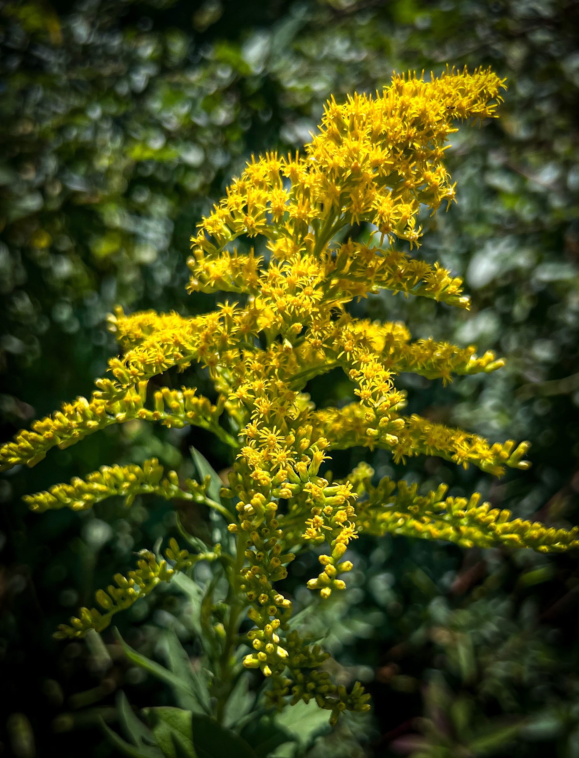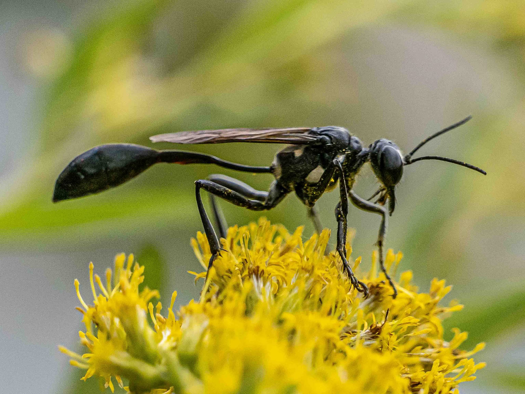 Goldenrod, frequently visited by Fraternal Potter Wasp, Common Eastern Bumblebee, Gold-marked Thread-Waisted Wasp, Locust Borers.