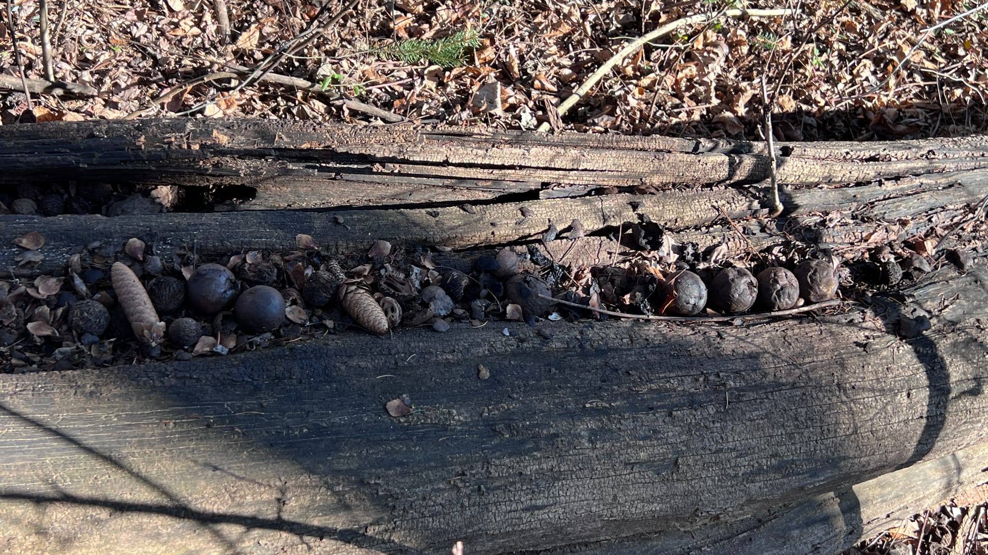 Birds aren't the only ones taking advantage of squirrel leftovers, mice and other small mammals likely feed on the same fragments. Unlike softer nuts the sturdy black walnut shells guard against rapid decay providing food value for a full season. Squirrels draw on this forest mainstay all winter and share (albeit unintentionally) the currency of the black walnut economy.