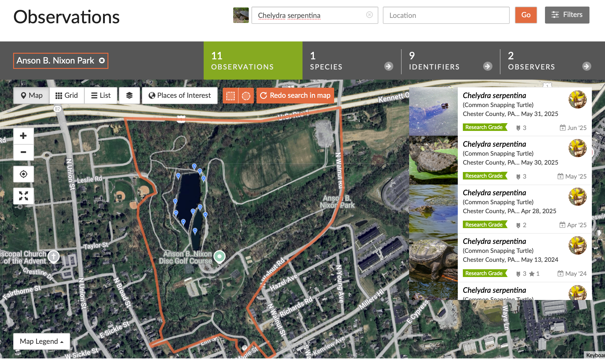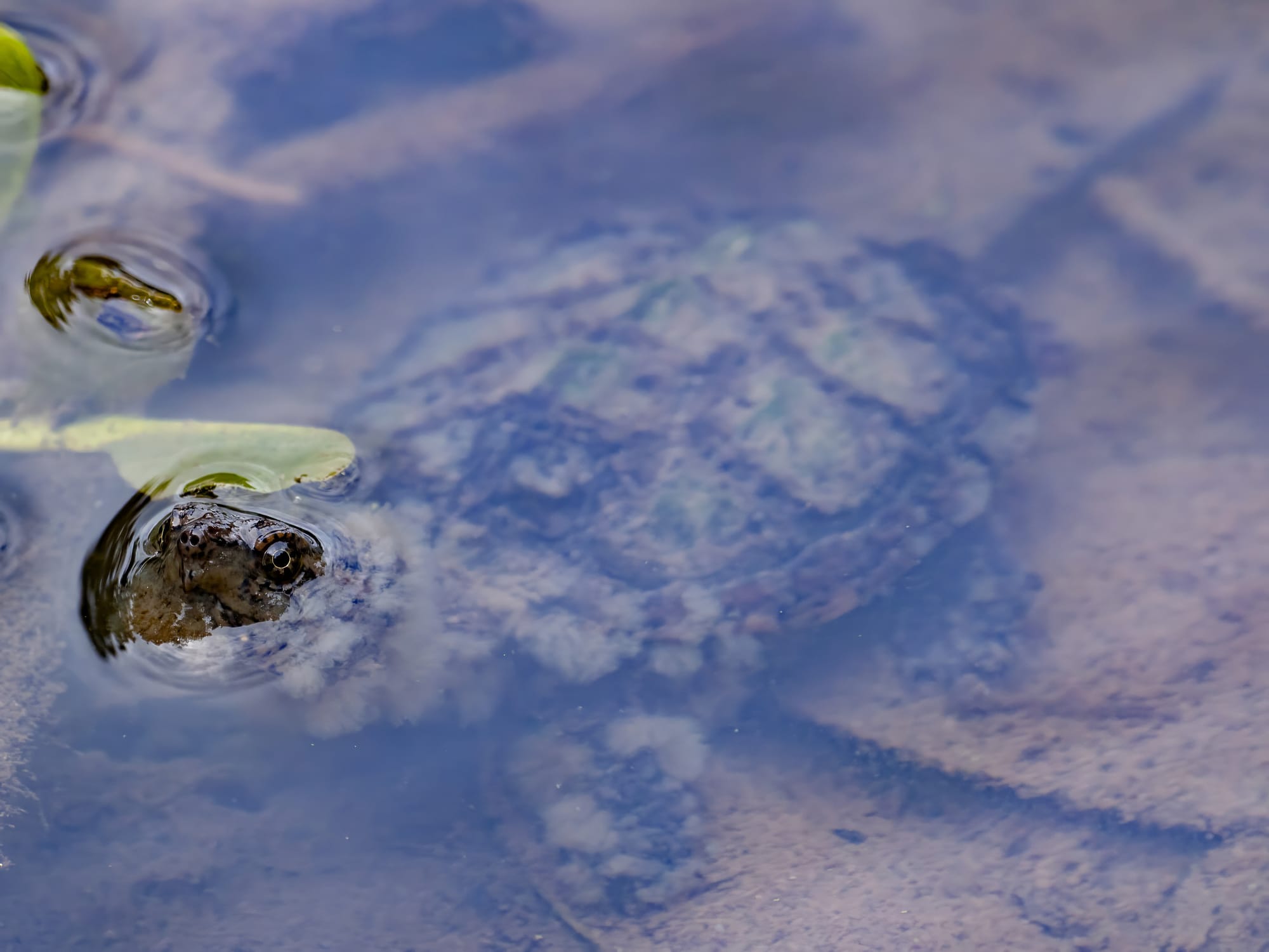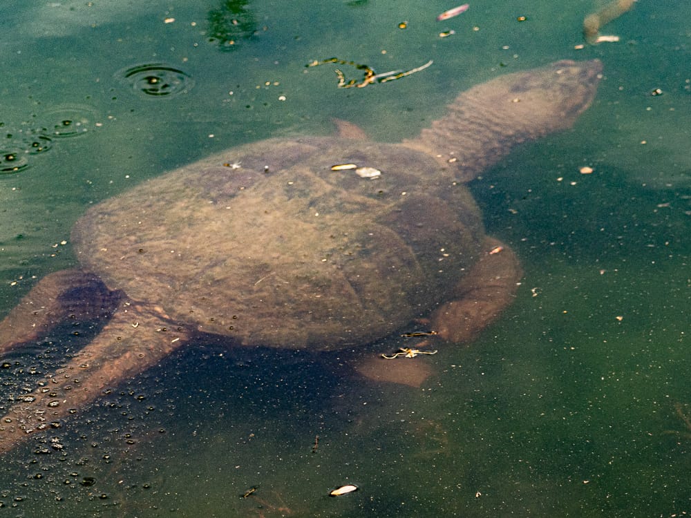 Most of the Common Snapping Turtles (Chelydra serpentina) I've spotted at the park were floating in the ponds or foraging around the edges.