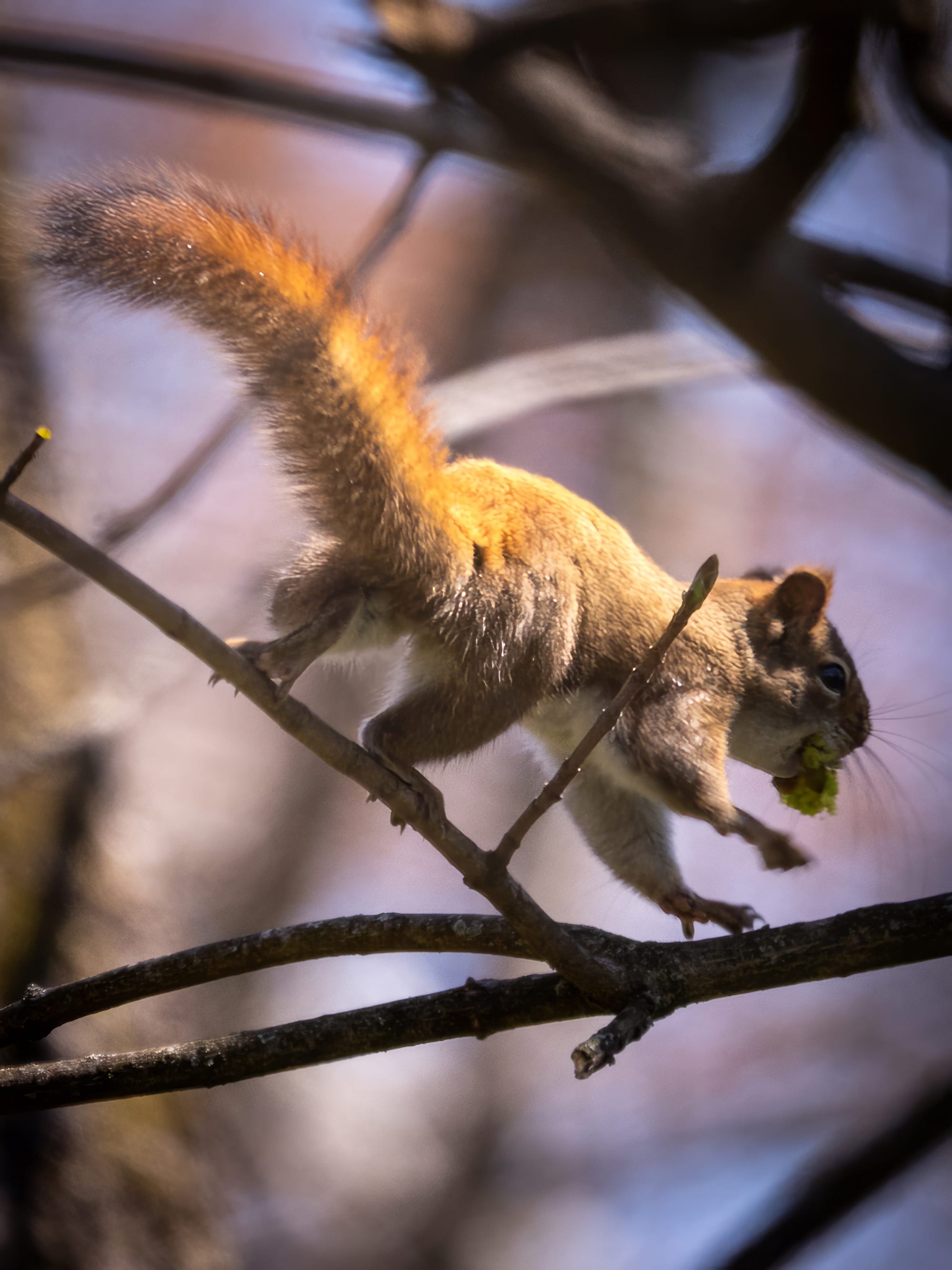 I had no idea that squirrels ate tree flowers. I don't know why the idea surprised me when Mark Volpe sent me the picture above, but it did - after all squirrels do eat or gnaw on just about everything else. The practice was confirmed for Red Squirrels when I saw one at the park enjoying tree flowers too.