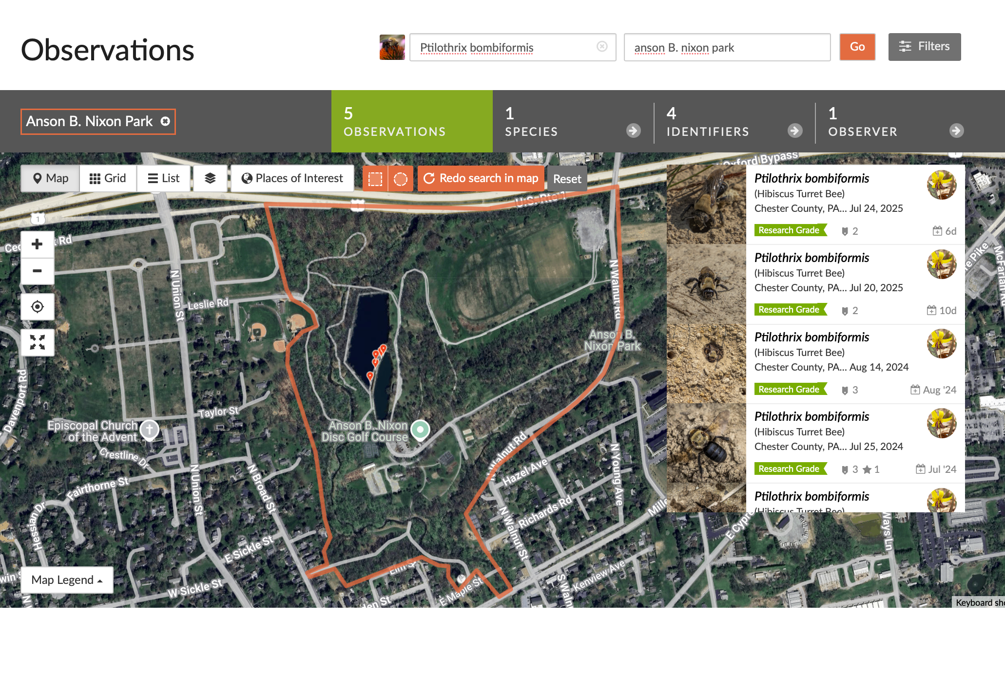 If you visit the park over the next couple of weeks take some time to visit the Hibiscus Turret Bee colony along the path between the ponds. Ptilothrix bombiformis, (also called the Rose-mallow Bee or Eastern Digger Bee), is a solitary mining bee.