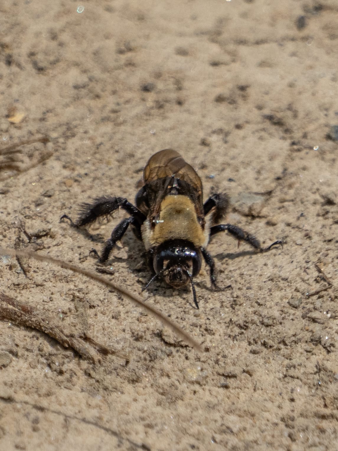This fascinating species of bee prefers highly compacted soils for their nest, making the path between the ponds an ideal location. Right now the female bees are busy digging and provisioning nests.