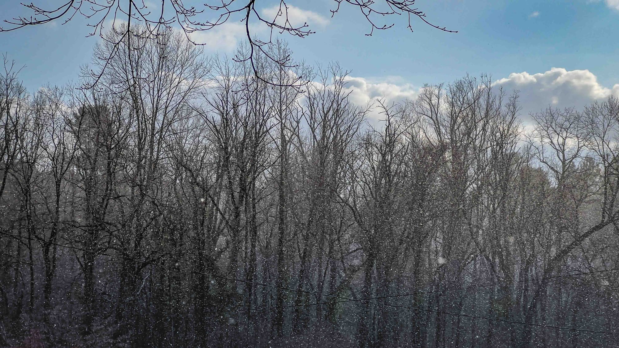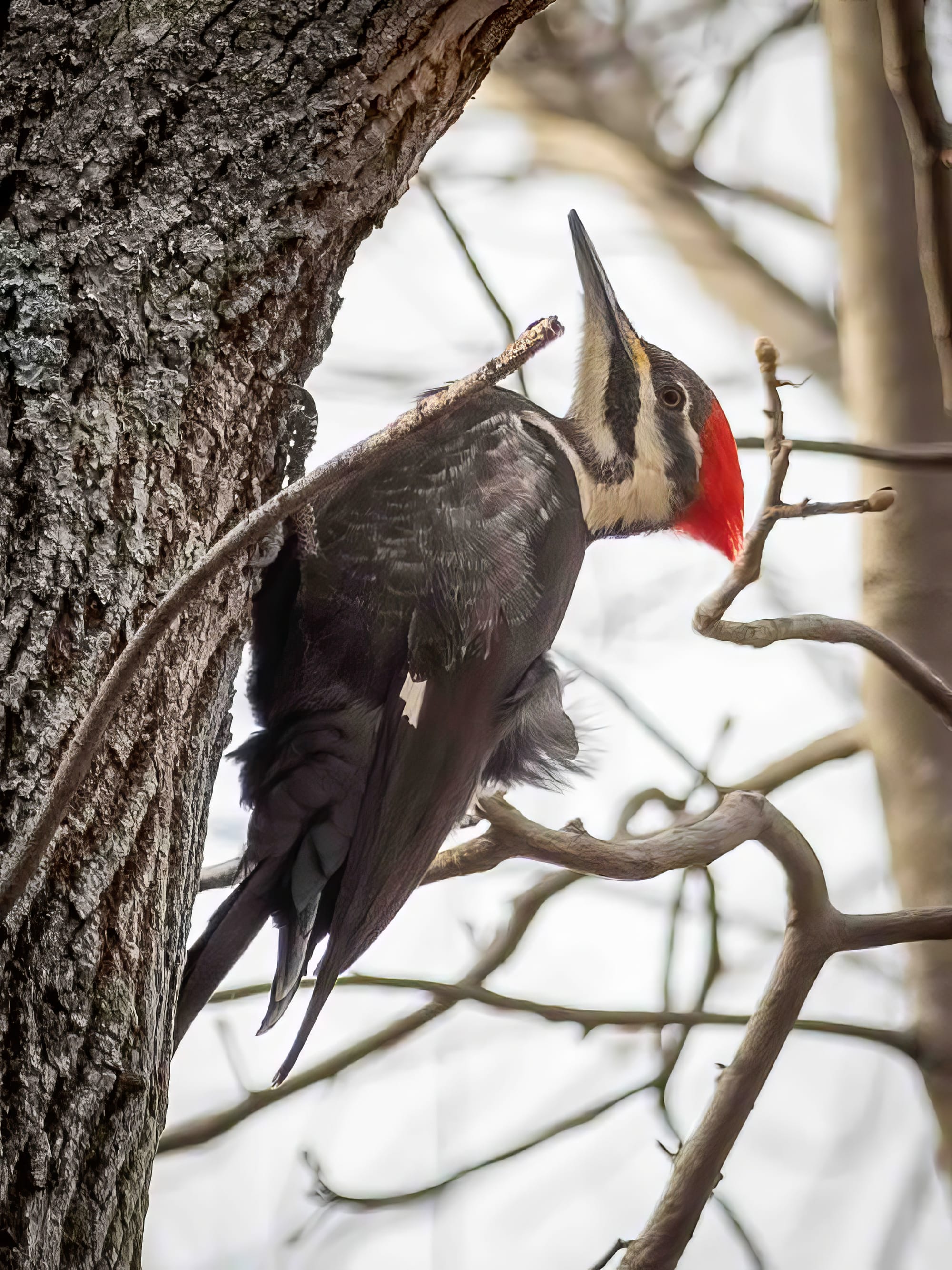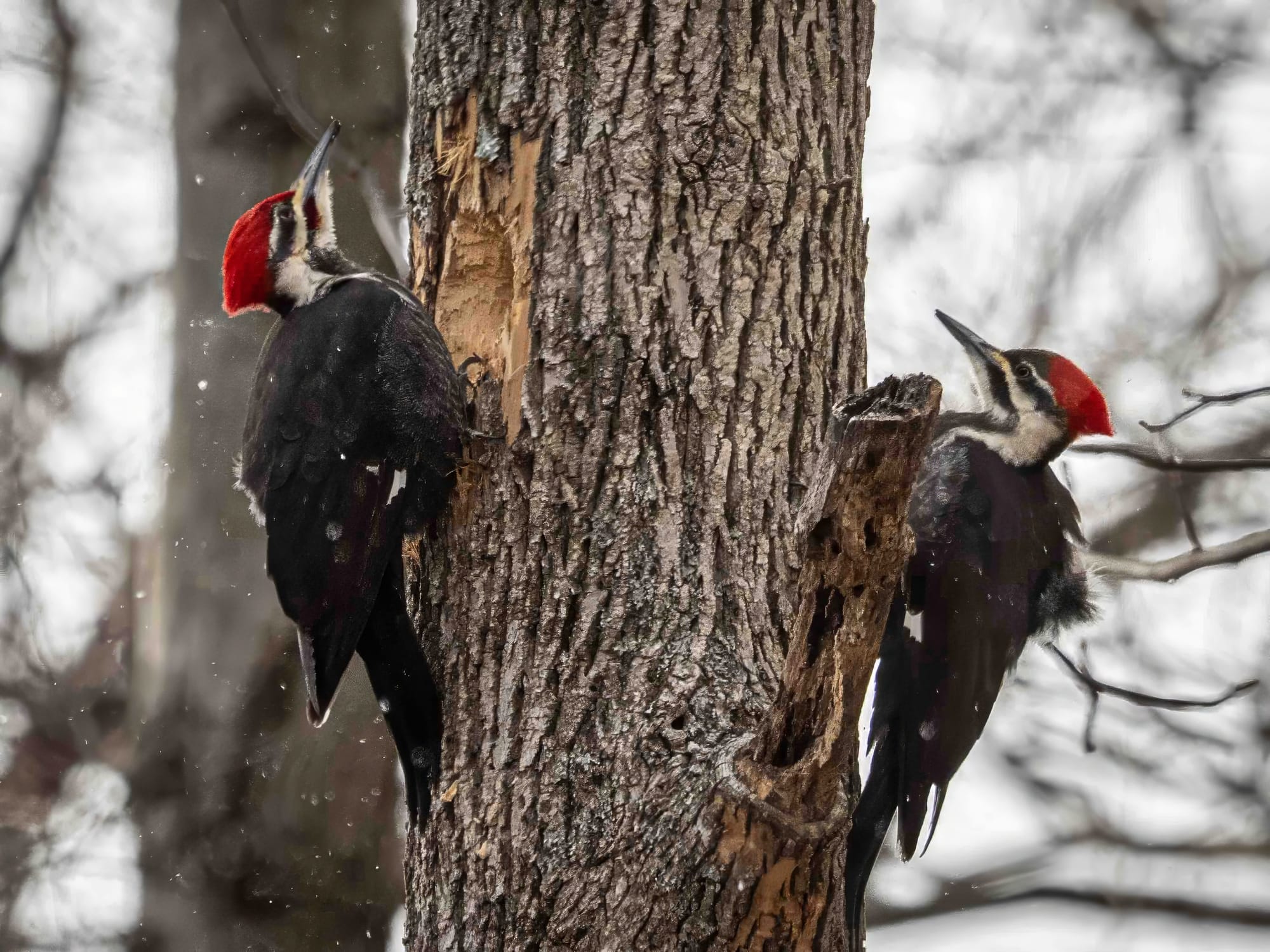 This afternoon at Anson B. Nixon Park the snow was flying, until it wasn't. A day of dramatic skies, bursts of snow and a pair of Pileated Woodpeckers.