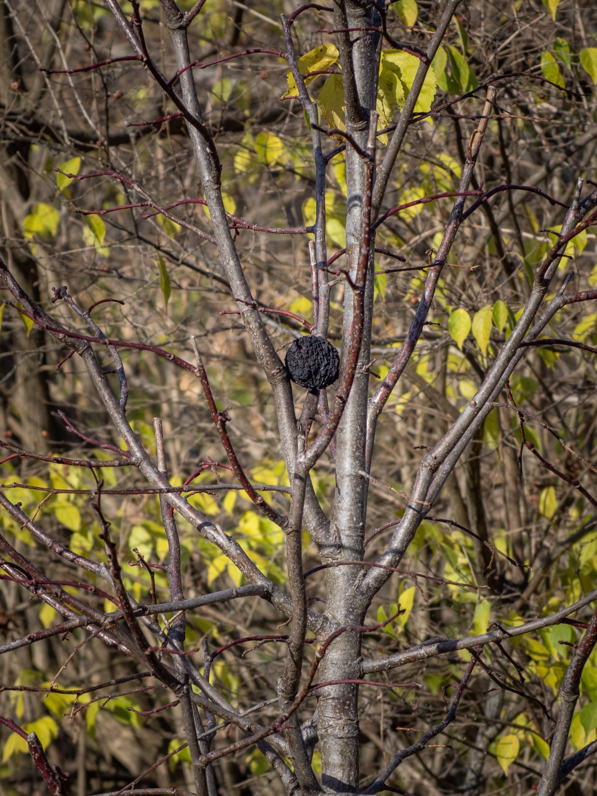 Here's more black walnuts stashed in trees by squirrels.