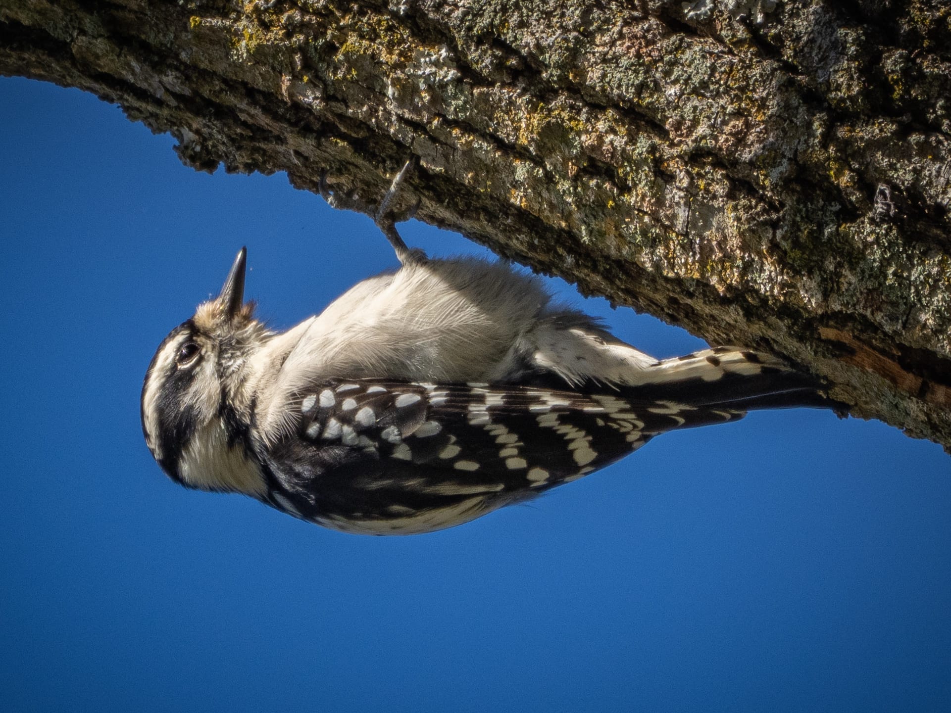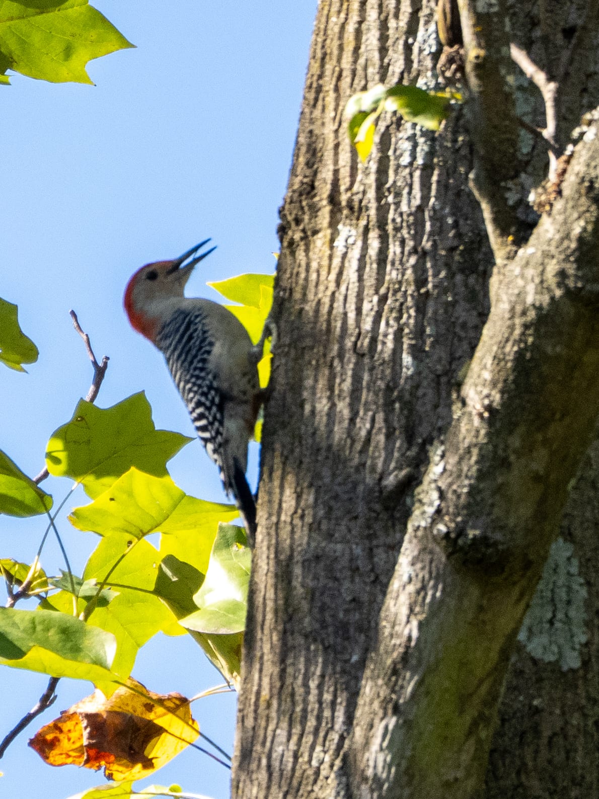 It's almost Woodpecker season. First an example of the abundant (and loud) population of Red-bellied Woodpeckers at the park, and a Downy woodpecker.