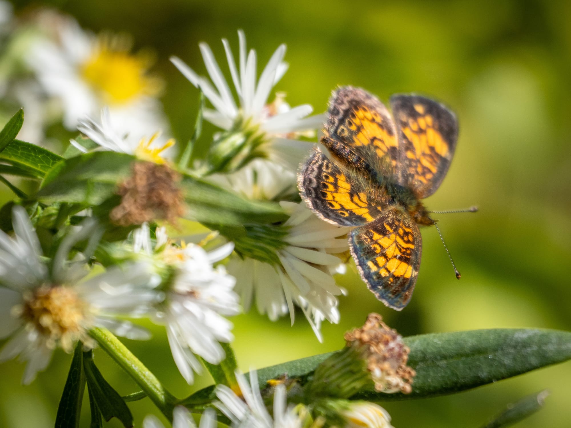 The last of this years butterflies, a Huron Sachem, Common Buckeye, Pearl Crescent, Eastern-Tailed Blue, and Clouded Sulphur.
