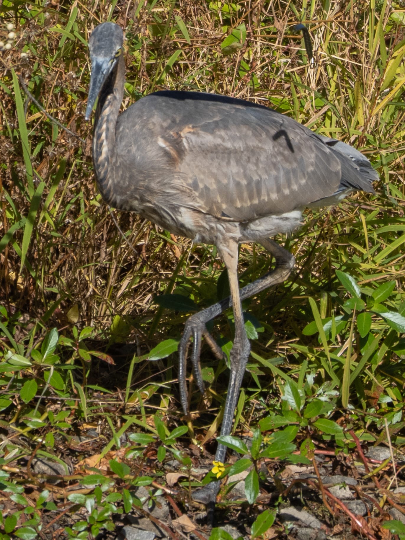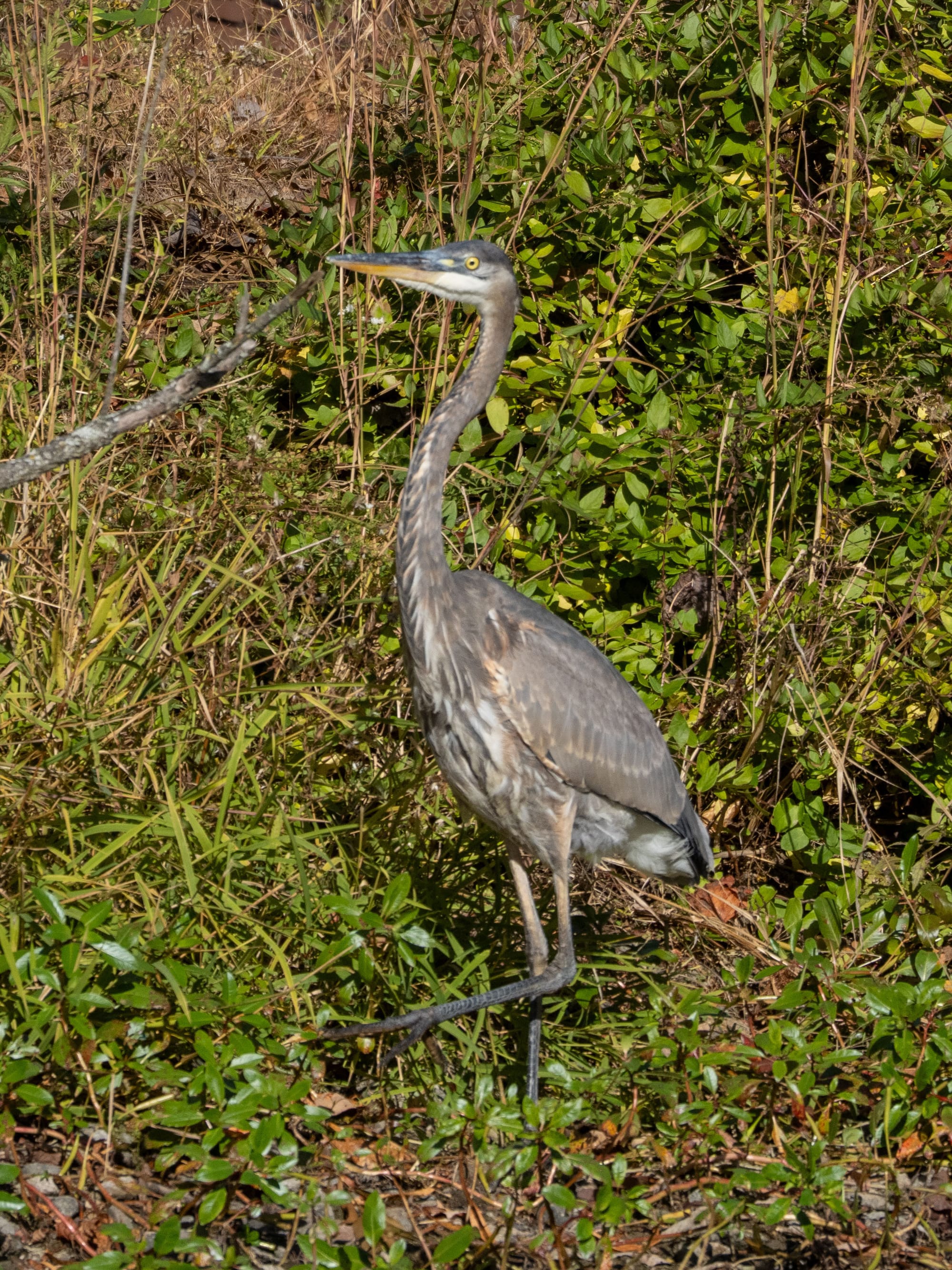 More of the Great Blue Heron(s) hunting on the banks of the small pond.