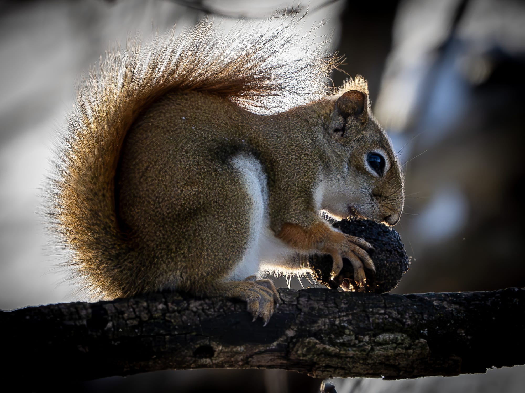 Winter is when Red Squirrels are their squirreliest. The first one was giving me a pretty good chewing-out for being a little too close for comfort. They are enjoying the black walnuts, stashing them everywhere. The final two pictures are a Red Squirrel in what looks like an roomy, comfortable split locust tree. As we were watching each other they took some time to get a drink of snow.