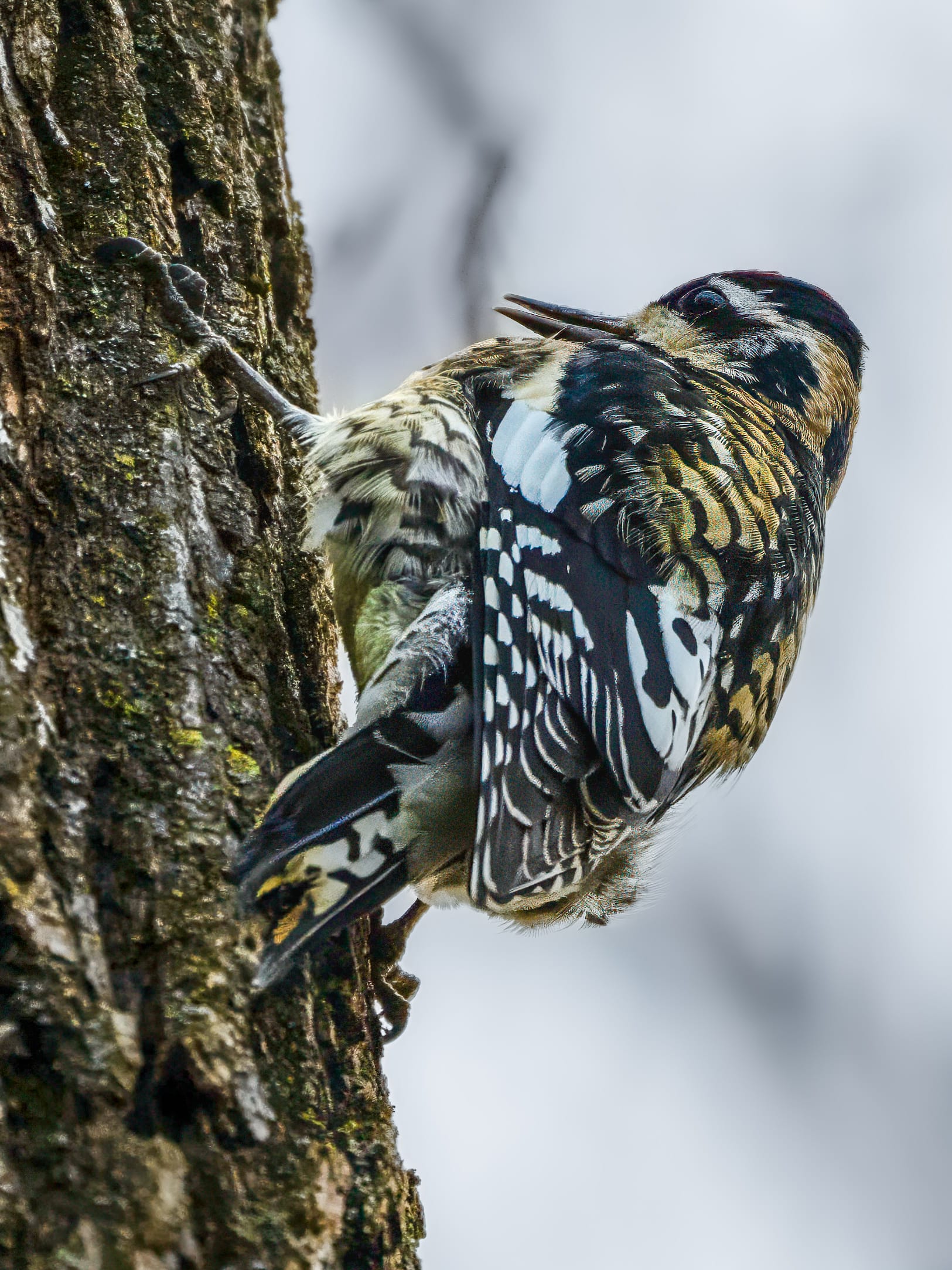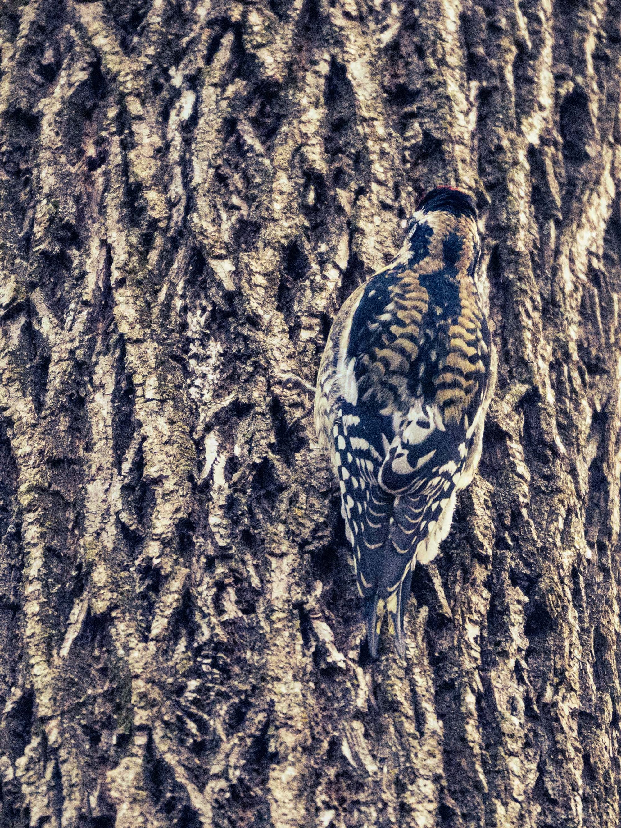 I was pleased to see a Yellow-bellied Sapsucker a few days ago. I've seen them fleetingly, heard their relatively quiet calls, and seen their handiwork on the maple trees. You can se how well camouflaged they are against the bark of trees. The sap flows provide an important resource for many birds, insects and animals, of course it freezes if it's cold enough.