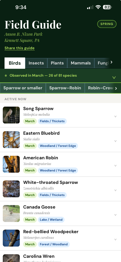 The guide is intended to make it easy for anyone visiting the park to identify what they are seeing. The species in the guide represent observations recorded on iNaturalist by community observers. They are not a full inventory of what you may see at the park. Become a Community Observer.