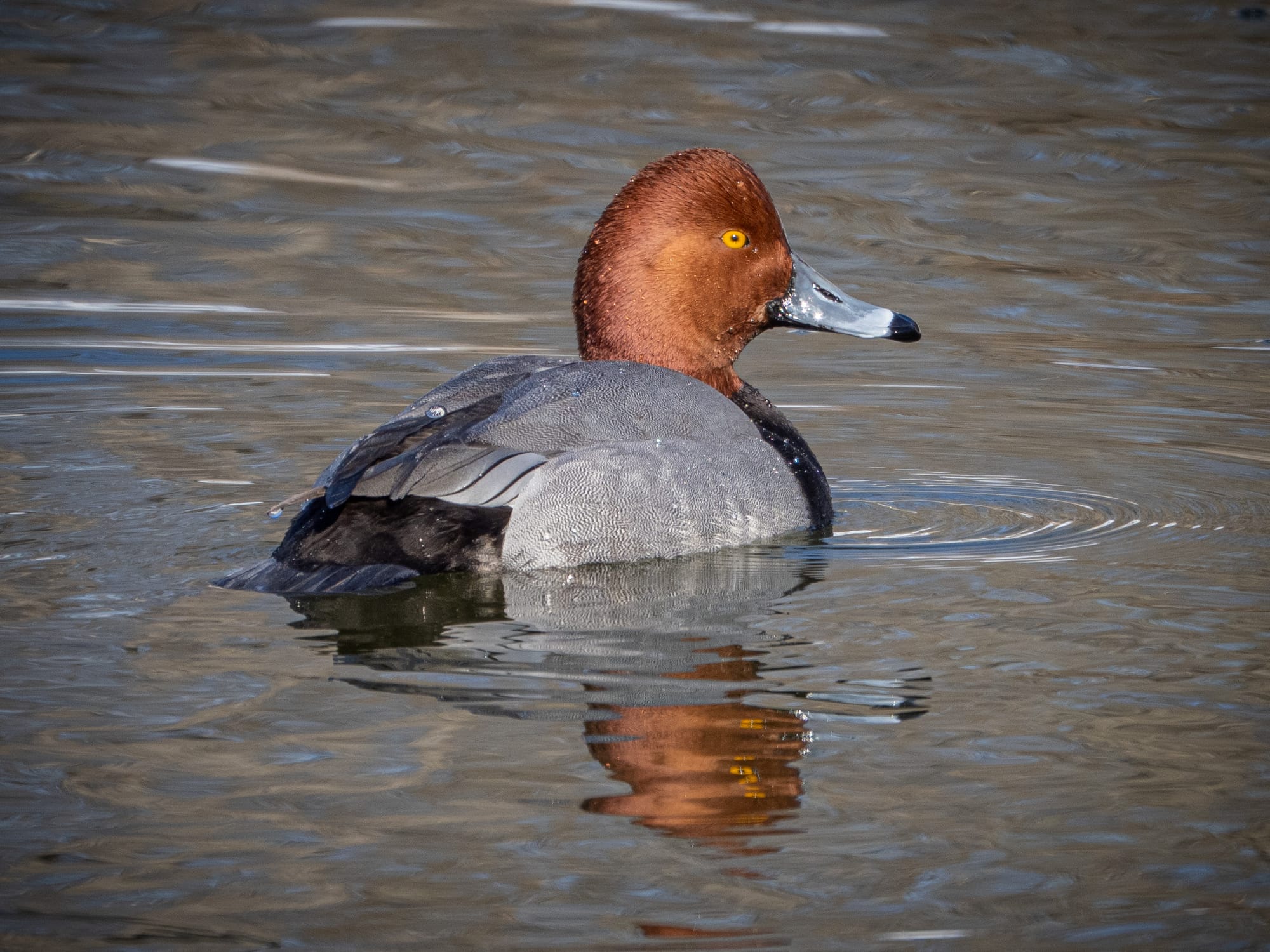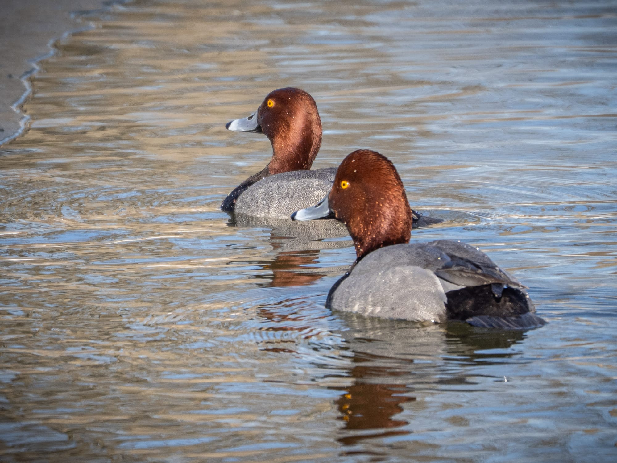 Both of the redheads were males. During migration birds are sorting out pair bonds or moving ahead of females and small male groups are common.