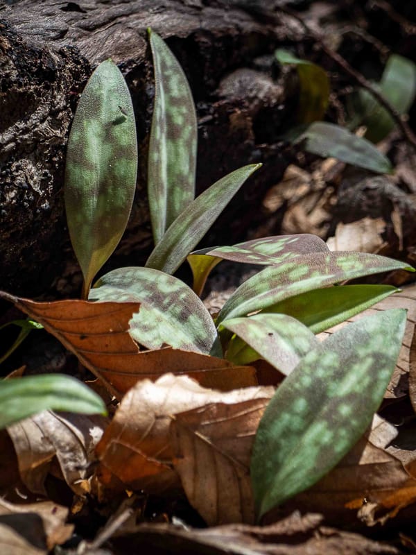The Yellow Trout Lily is showing it's dappled dark bronze and green leaves like the backs of so many brook trout. The forest will soon be alive with blooms, it really is a remarkable sight. I think we ought to have a Trout Lily festival.