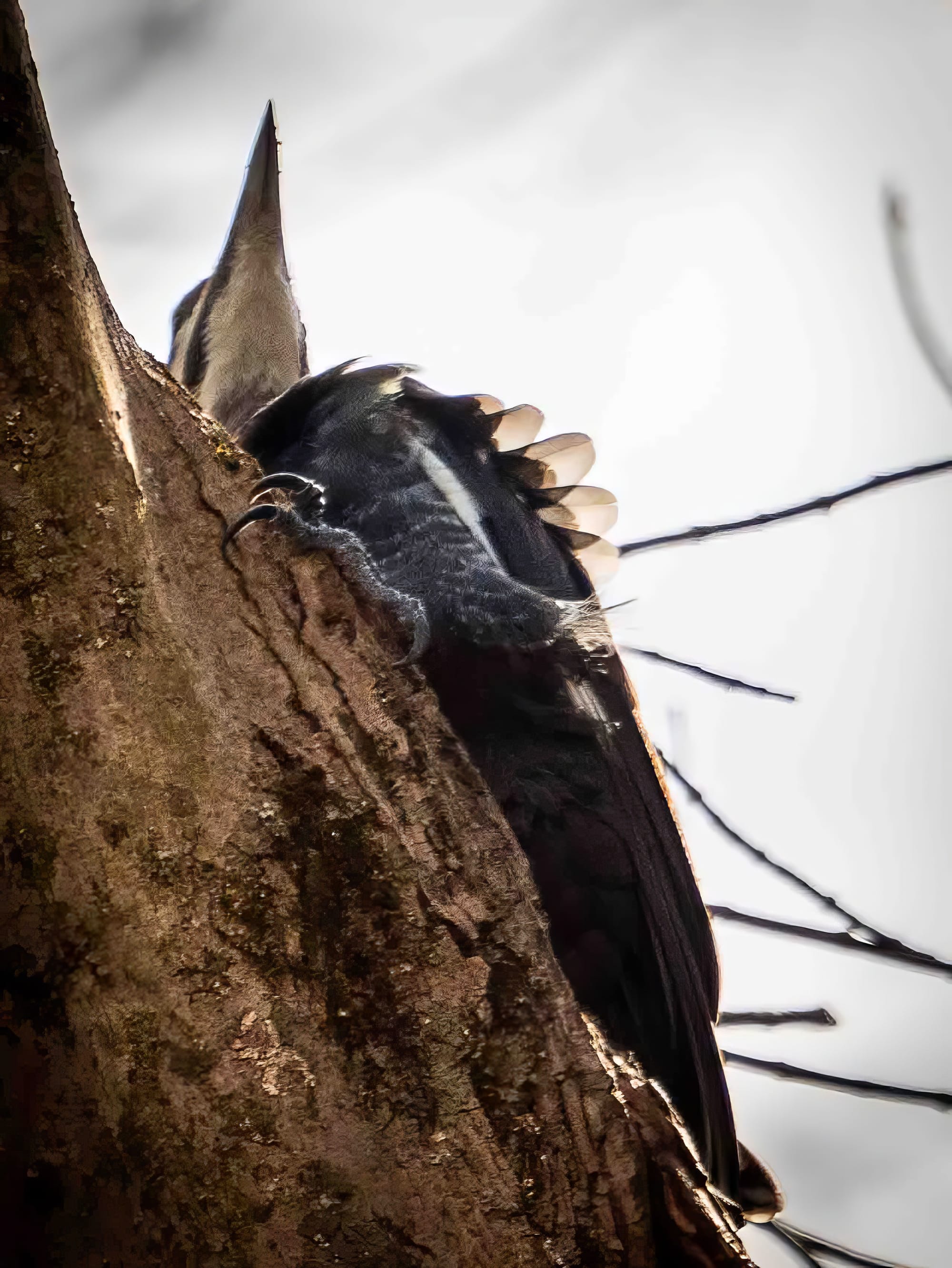 As a "keystone species," the Pileated creates many large tree cavities that other species use for roosting, nesting, and finding food. These cavities also help speed up the decay of large woody debris earning them the nickname "stump breaker."