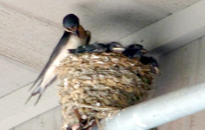 Barn Swallows have a forked tail, Barn Swallow nest in the park stage
