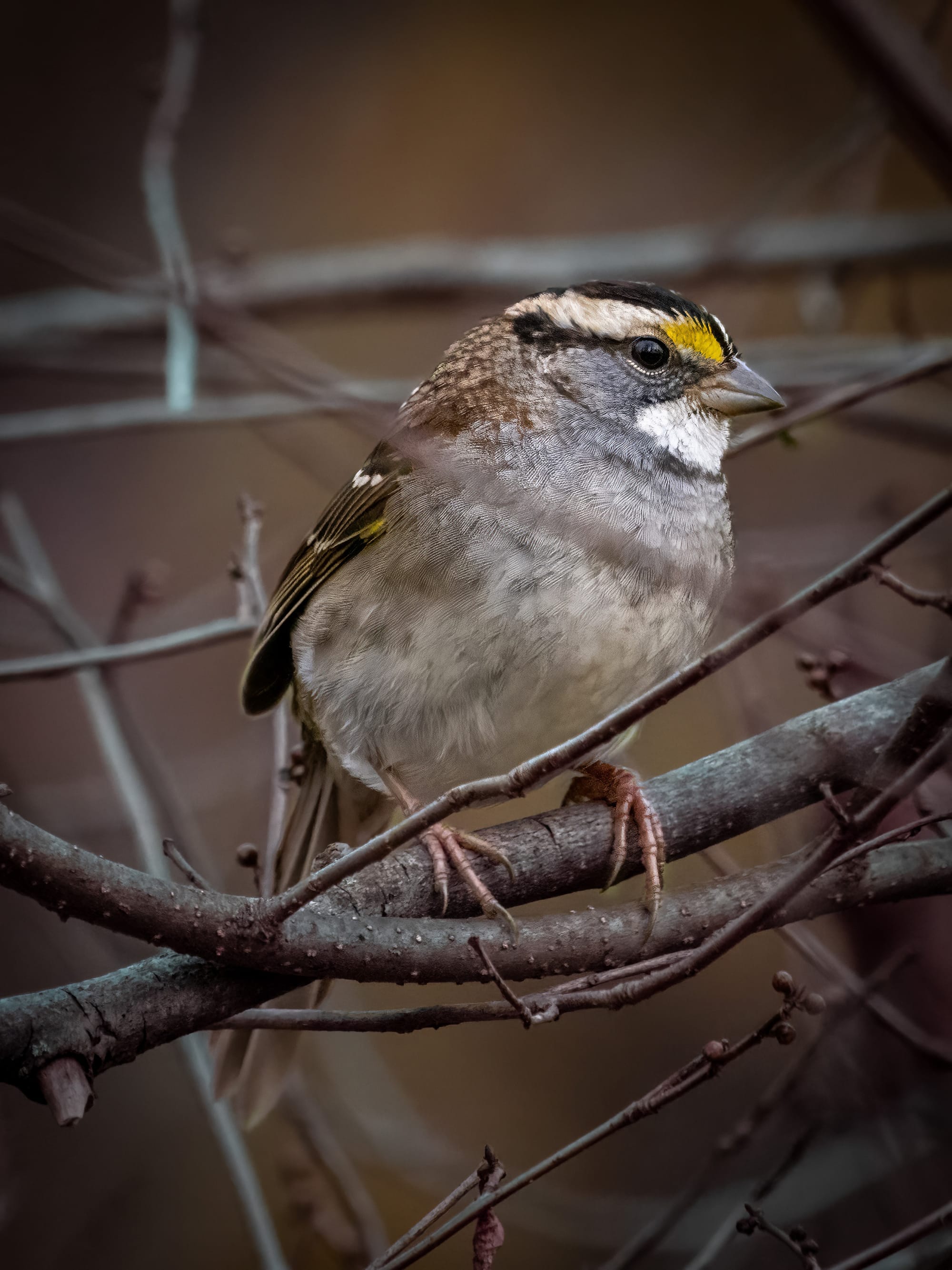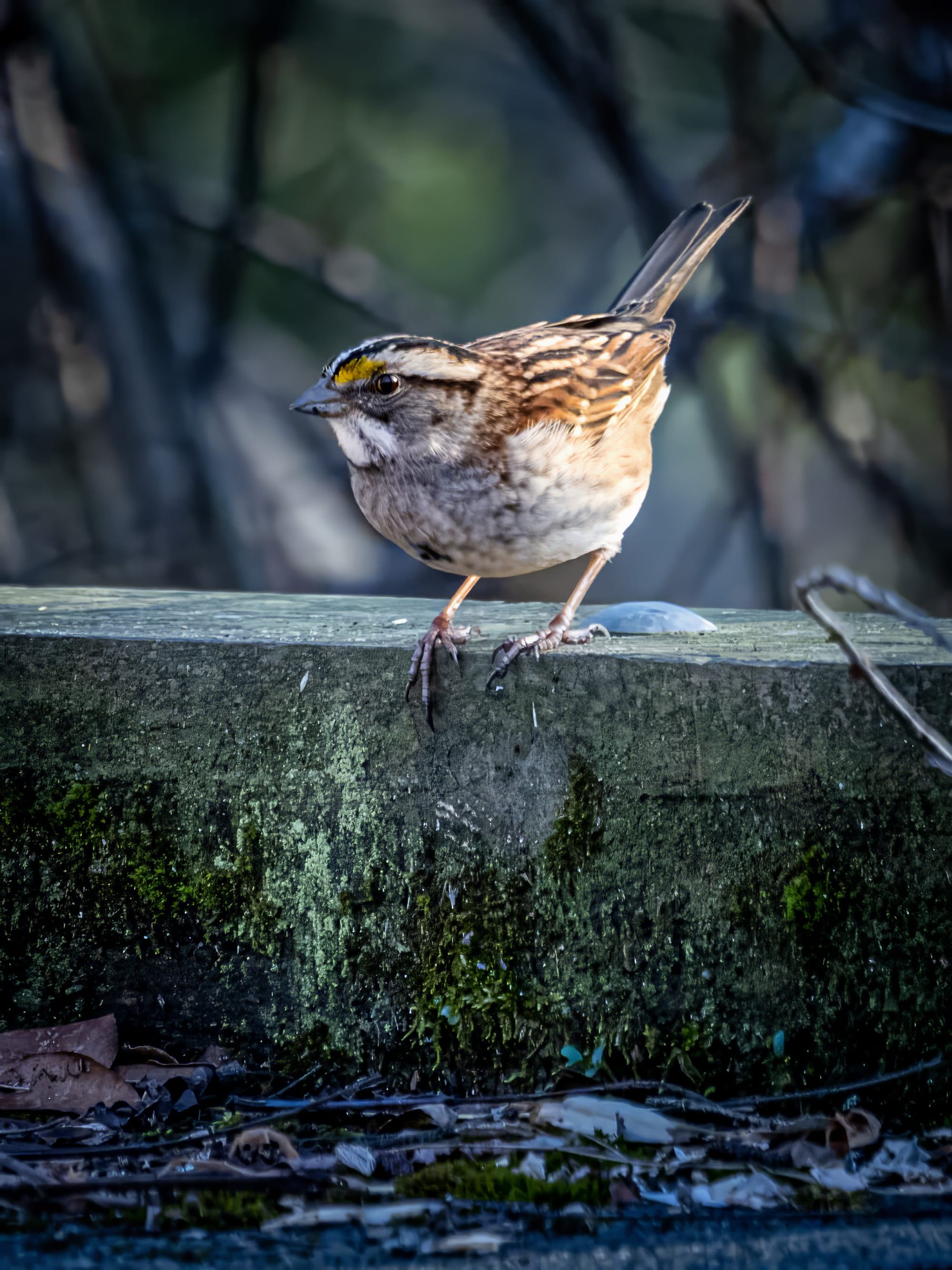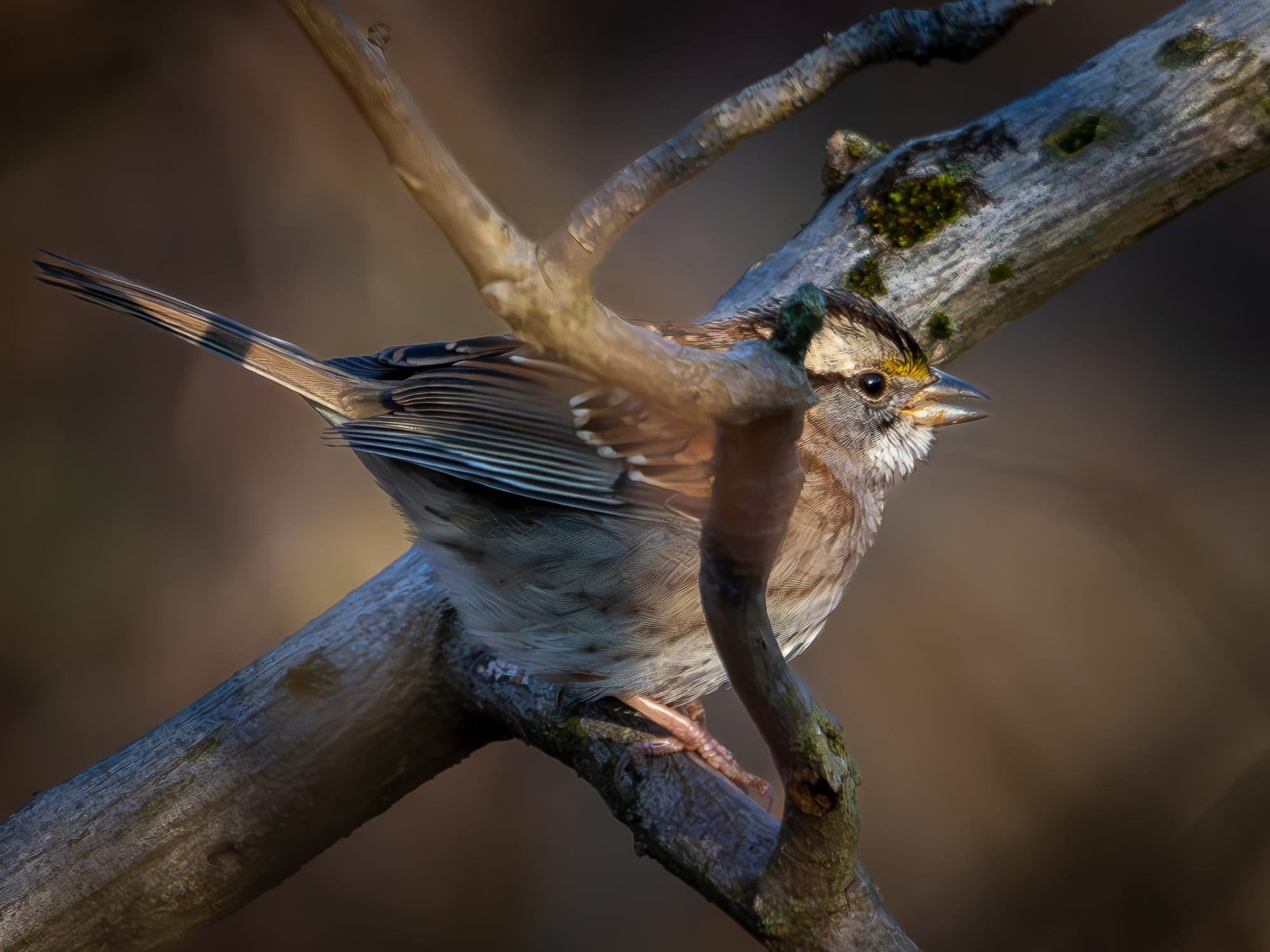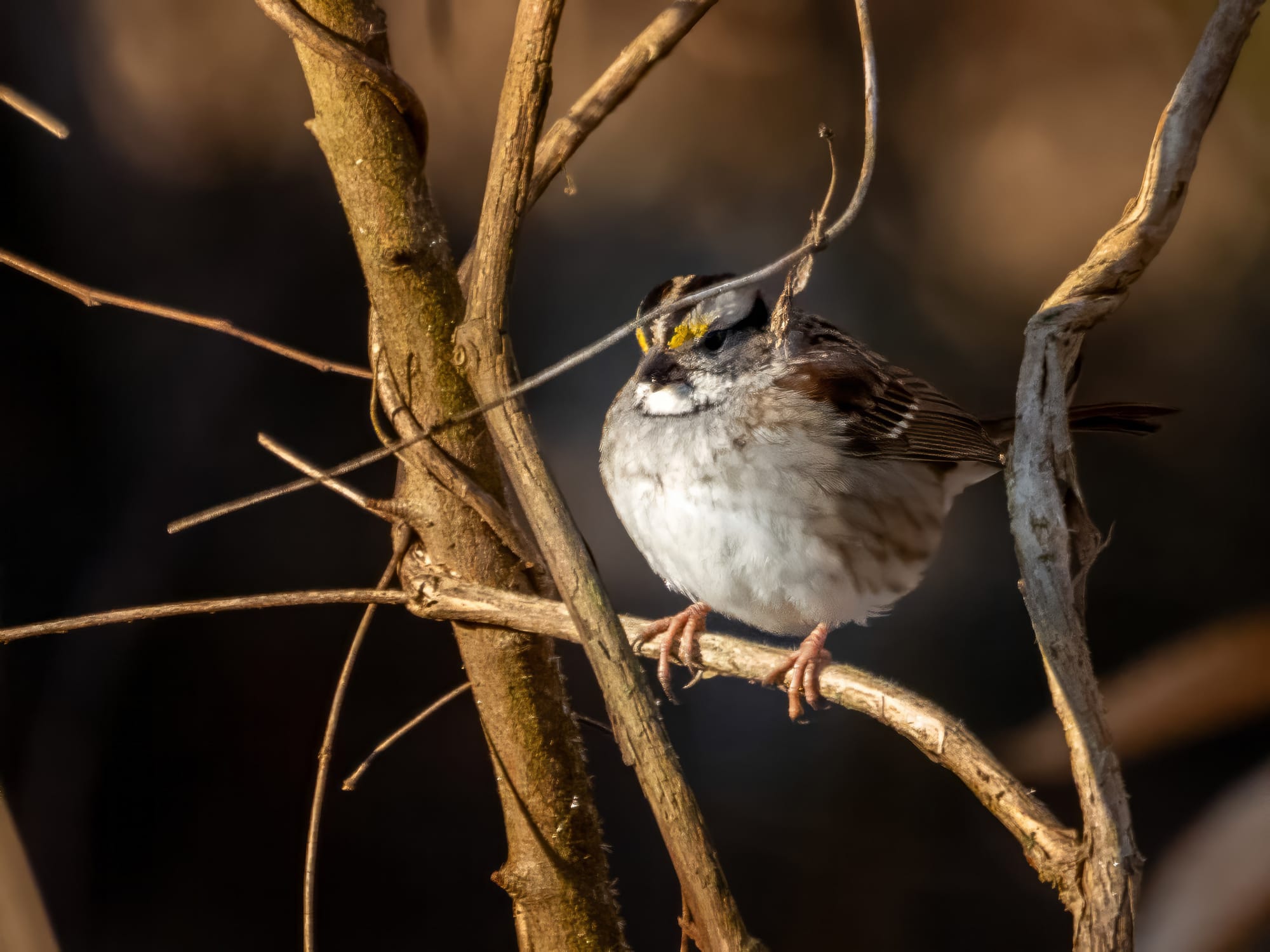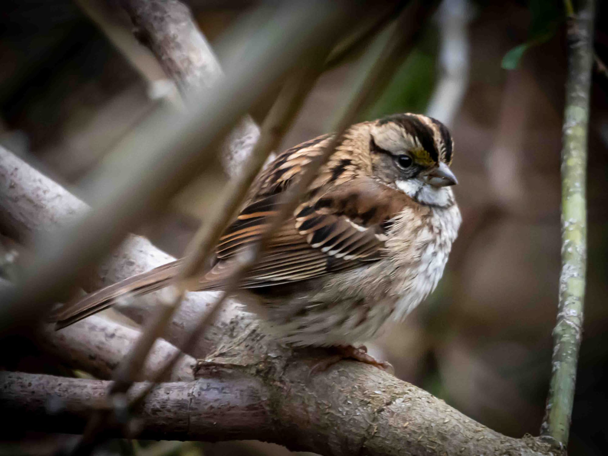 White-throated Sparrows are cautious but hearty birds, they'll spend the winter fluffed up to stay warm in the shadowy thickets where they spend the day foraging.
