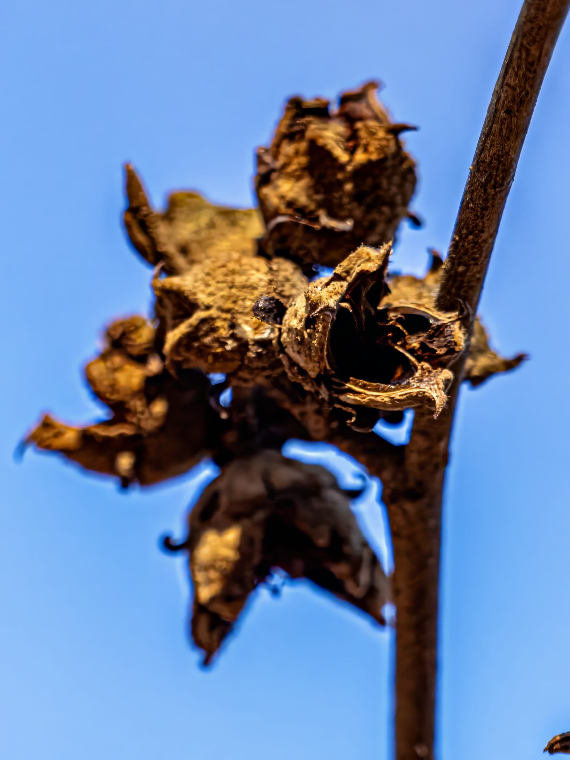 Witch hazel gains an evolutionary advantage by flowering during a time with fewer competing blossoms. Adapted for cold weather the long ribbony petals will roll up tight to survive frosty nights.