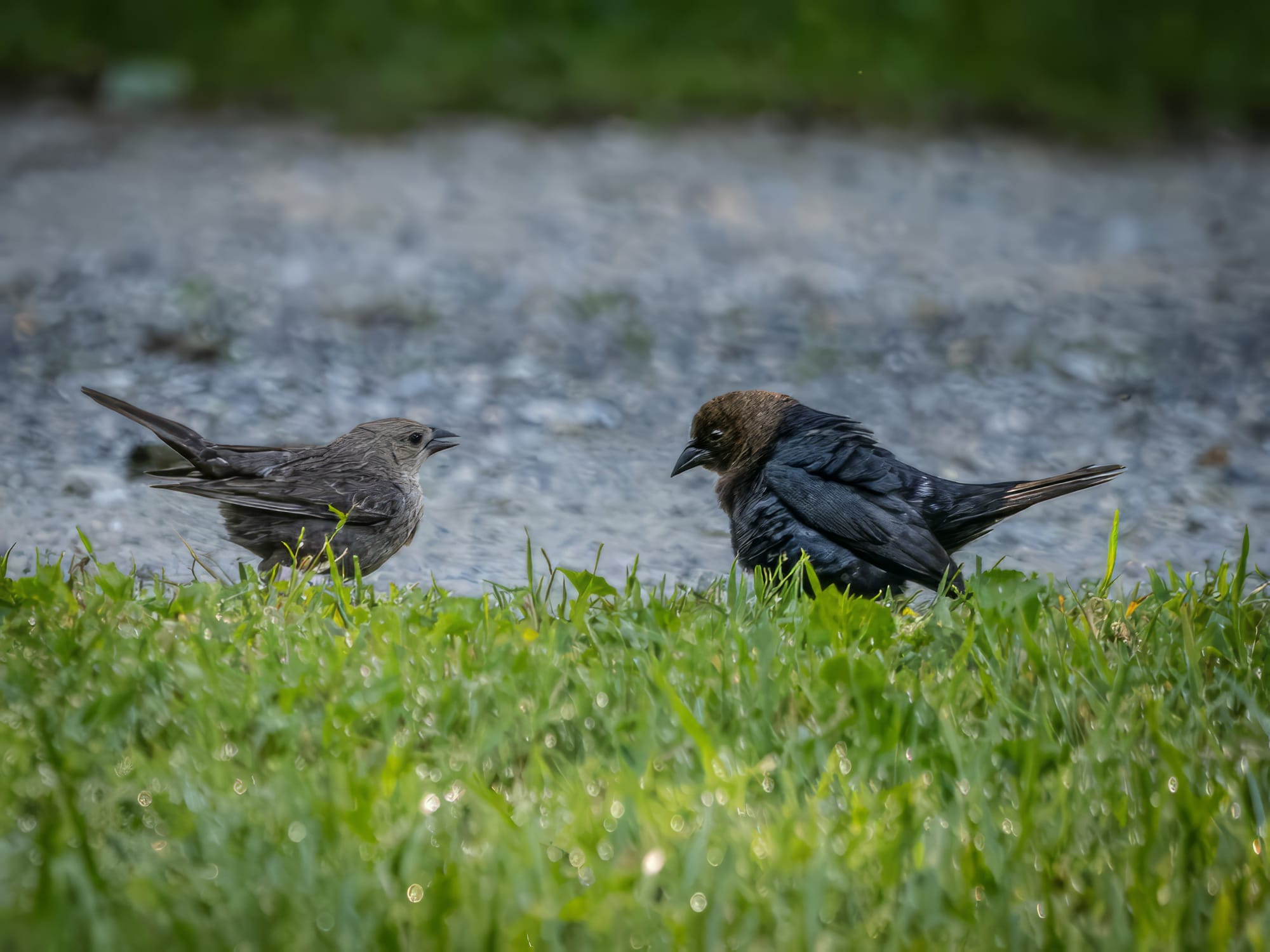 In the first photo a female (left) and male Brown-headed Cow Bird, the second and third, a Brown-headed Cowbird fledgling, finally a shot of the Song Sparrow raising the fledgling.