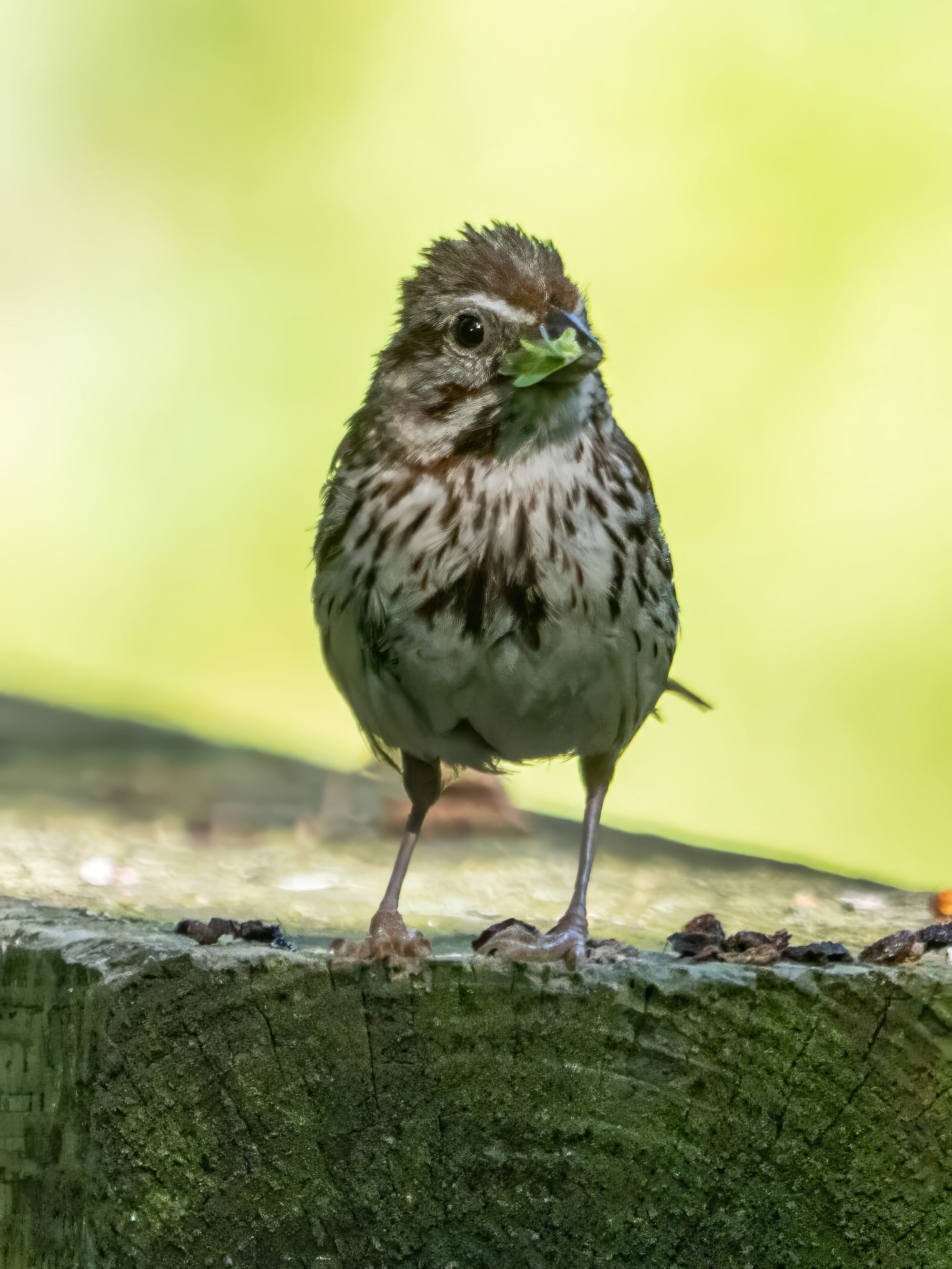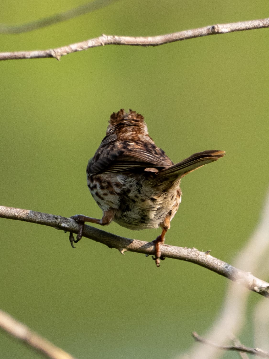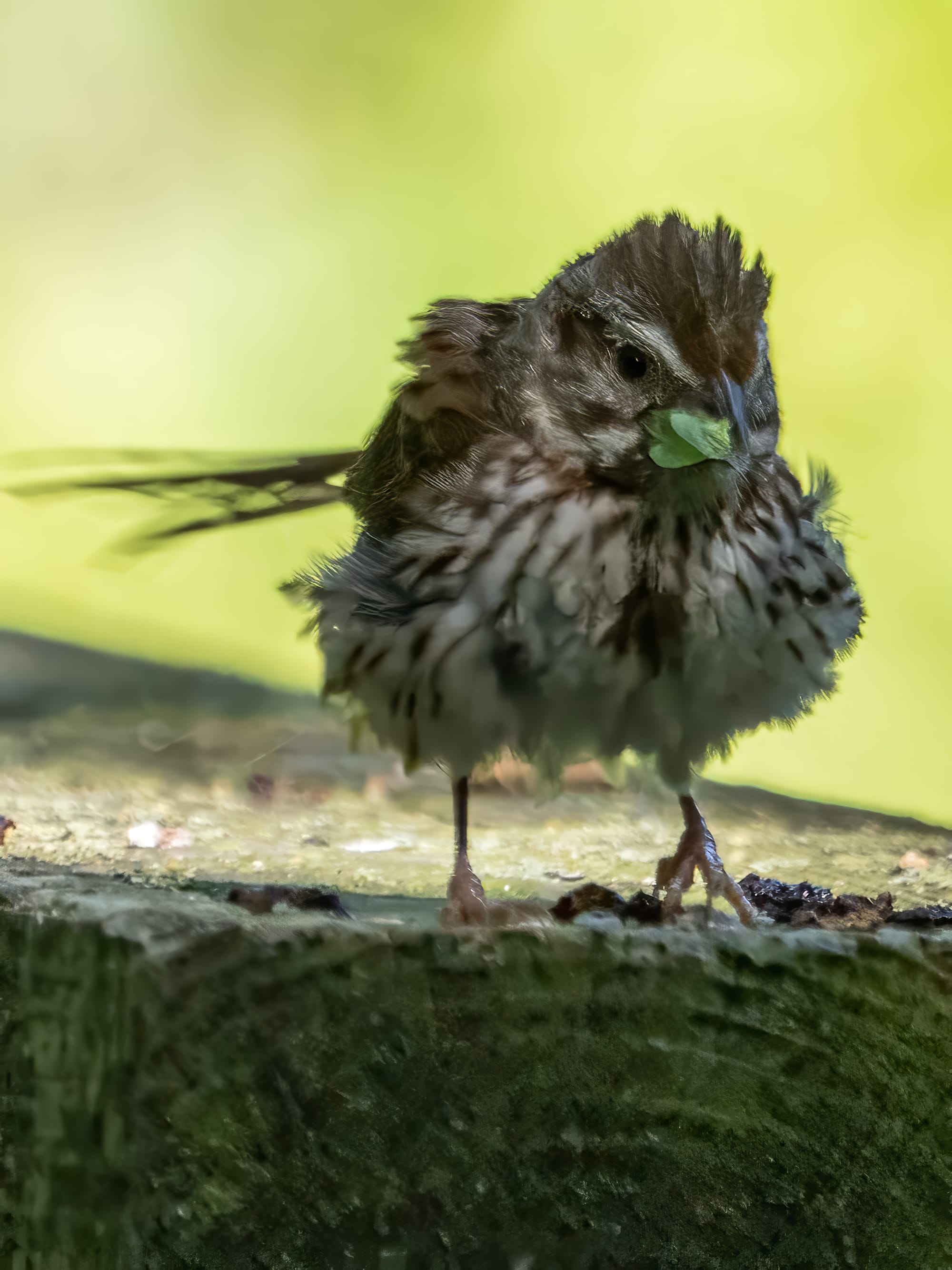 This Song Sparrow, with an insect in its beak, had a good shake before moving on to other business.