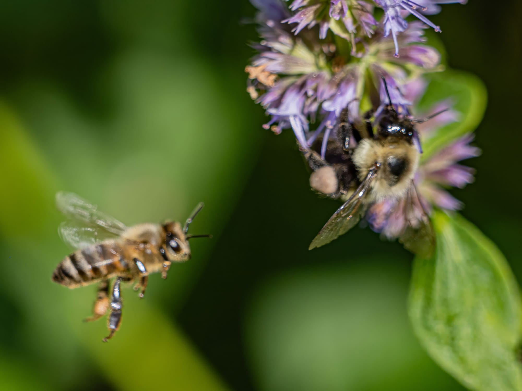Common Eastern Bumble Bee, Western Honey Bee with Common Eastern Bumble Bee, Ligated Furrow Bee, Denticulate Longhorn Bee.