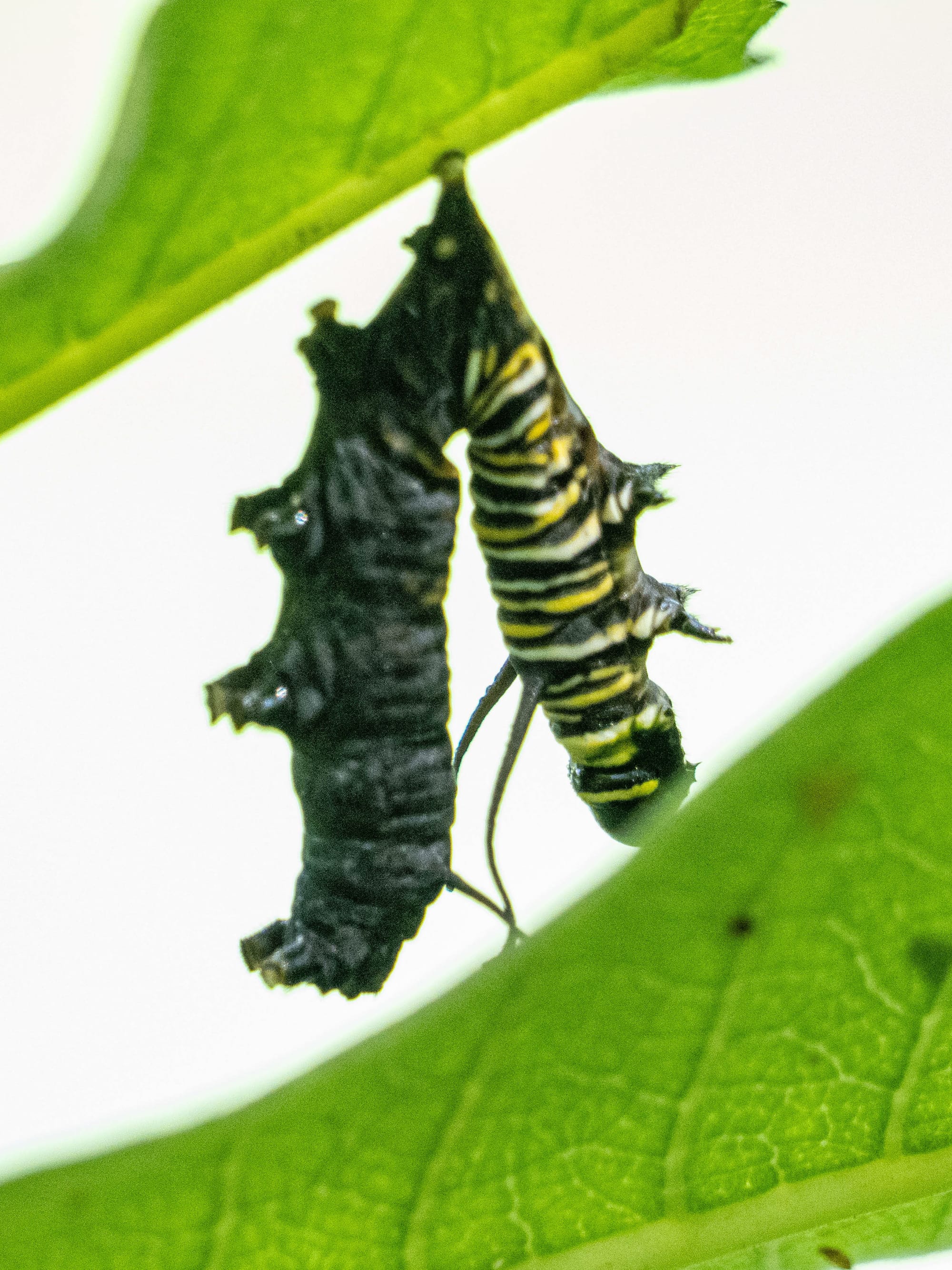 Monarch, Monarch Caterpillar, Molting caterpillar, two stages (instars) of the caterpillar growth cycle.