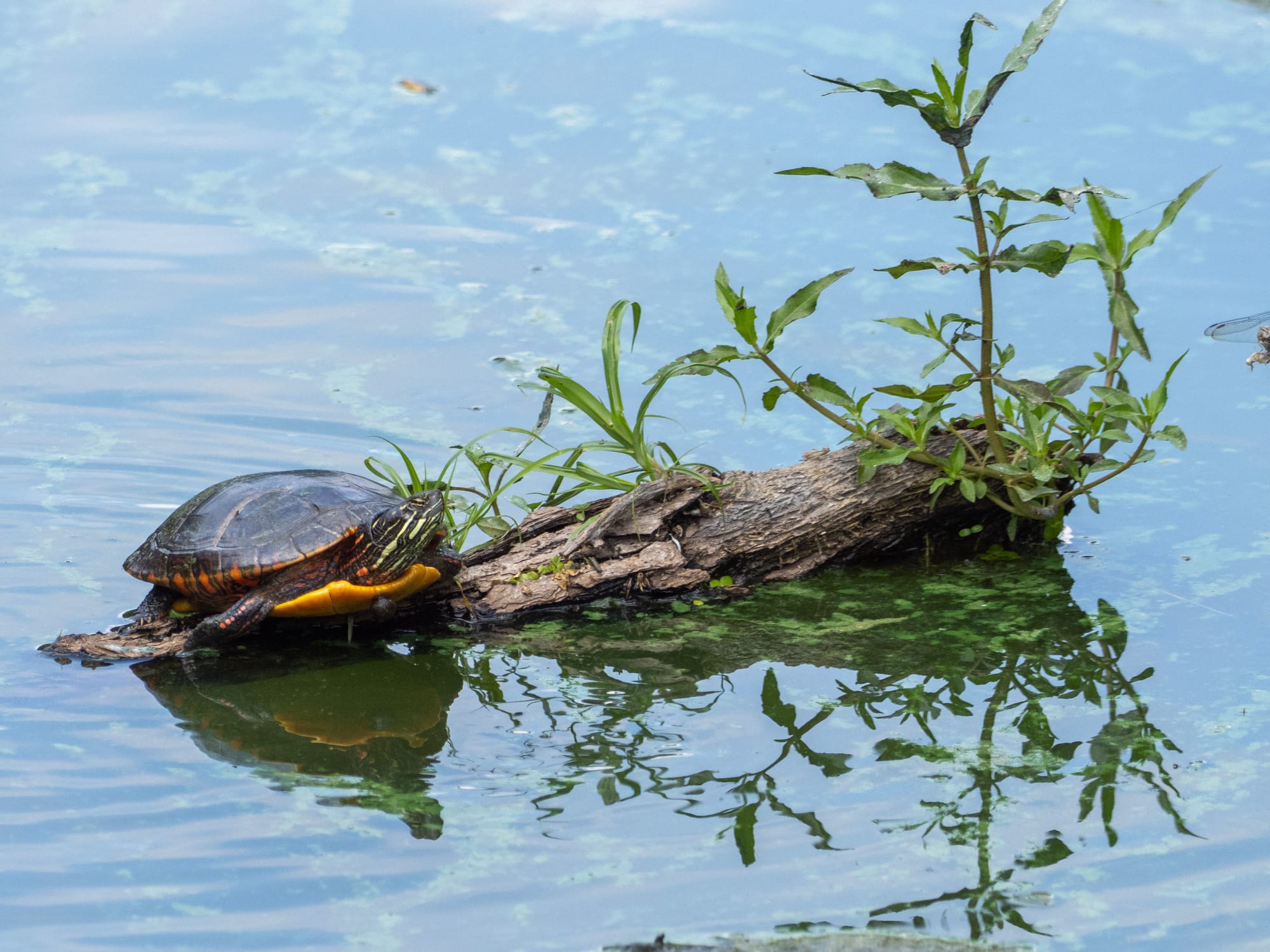 Eastern Painted turtles basking.