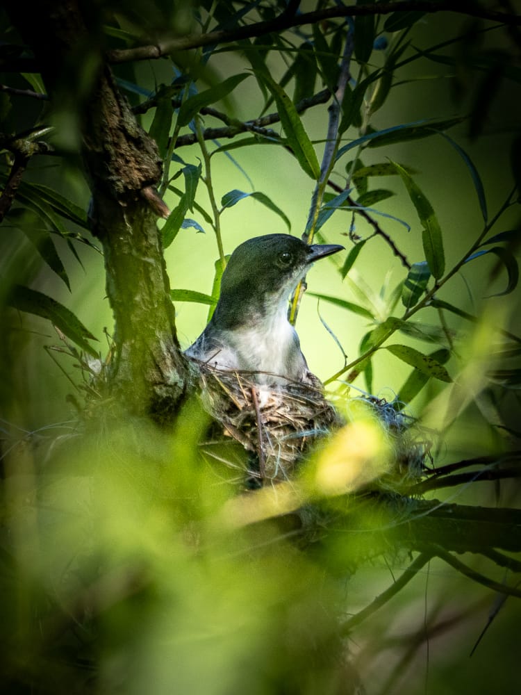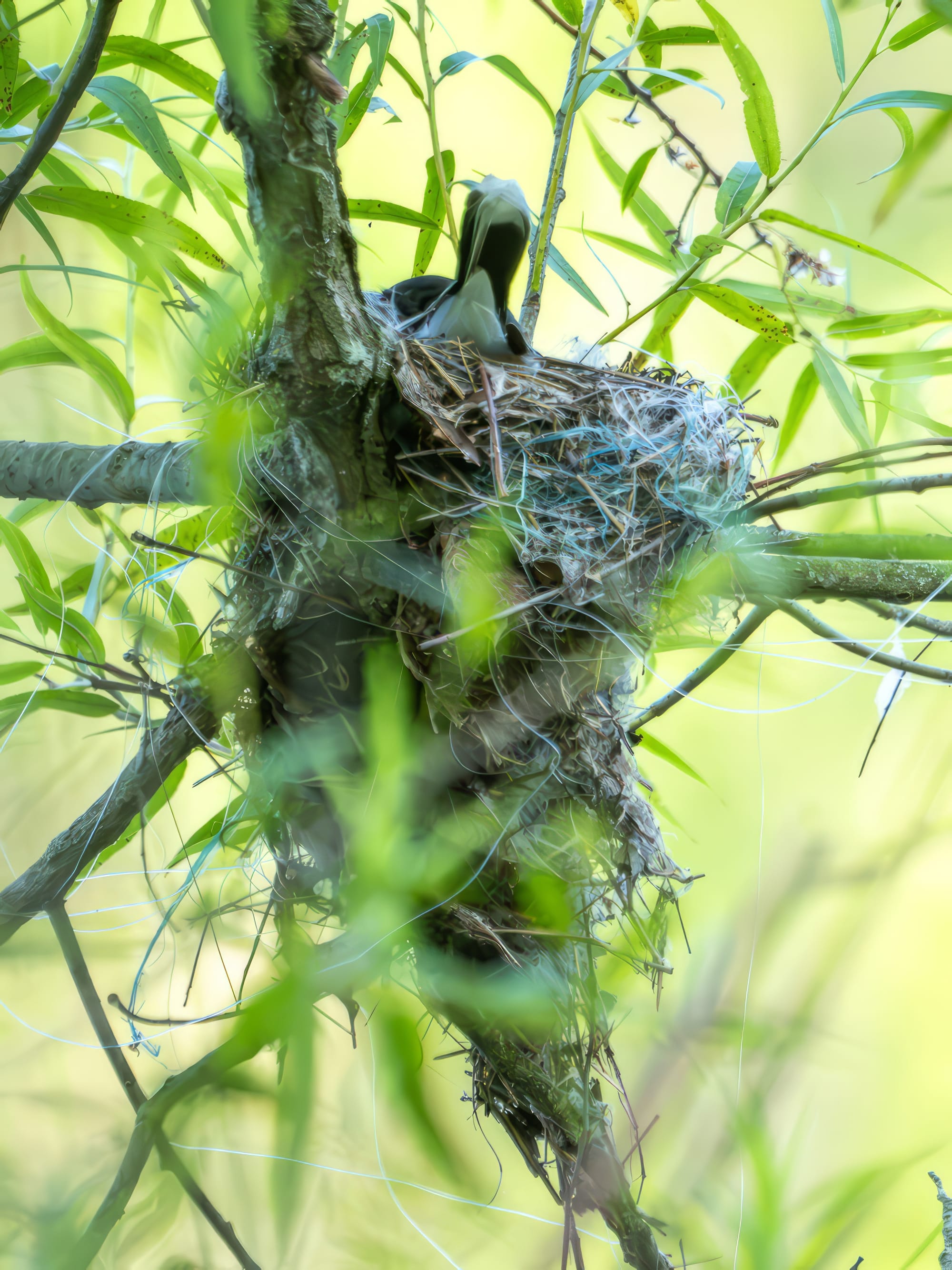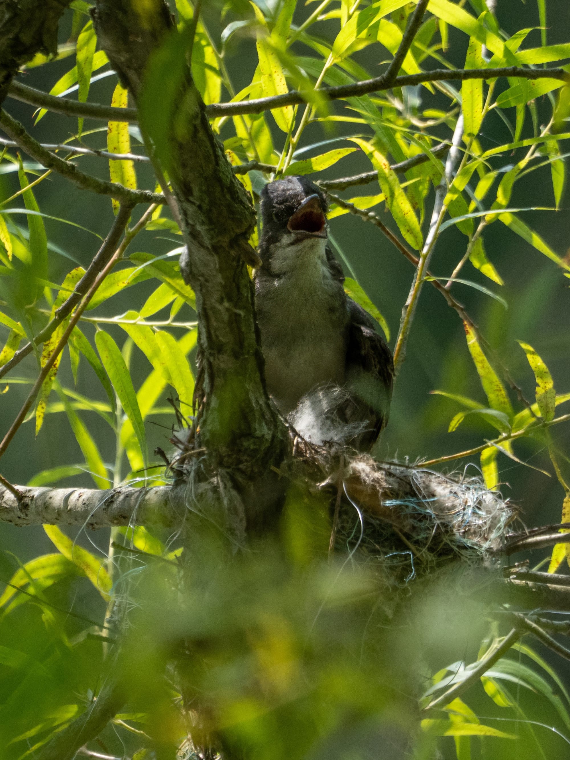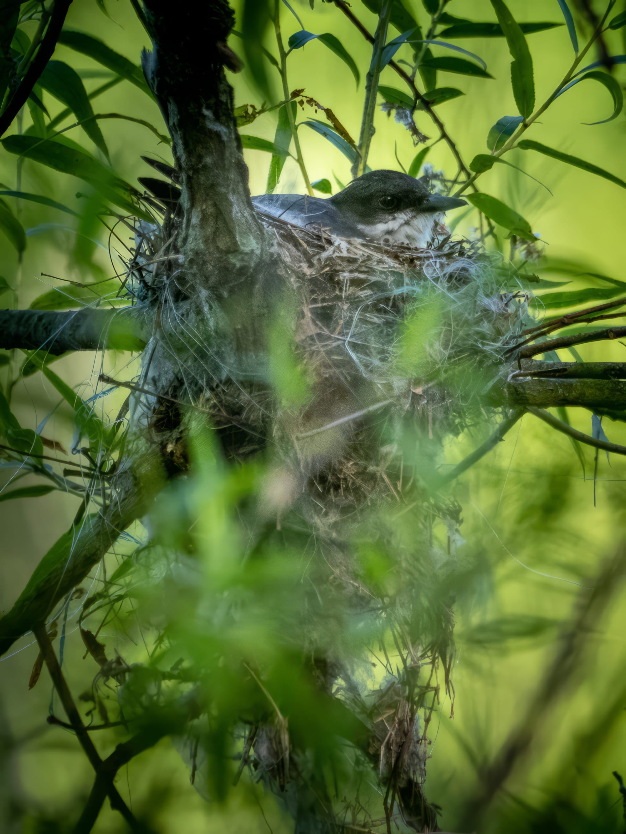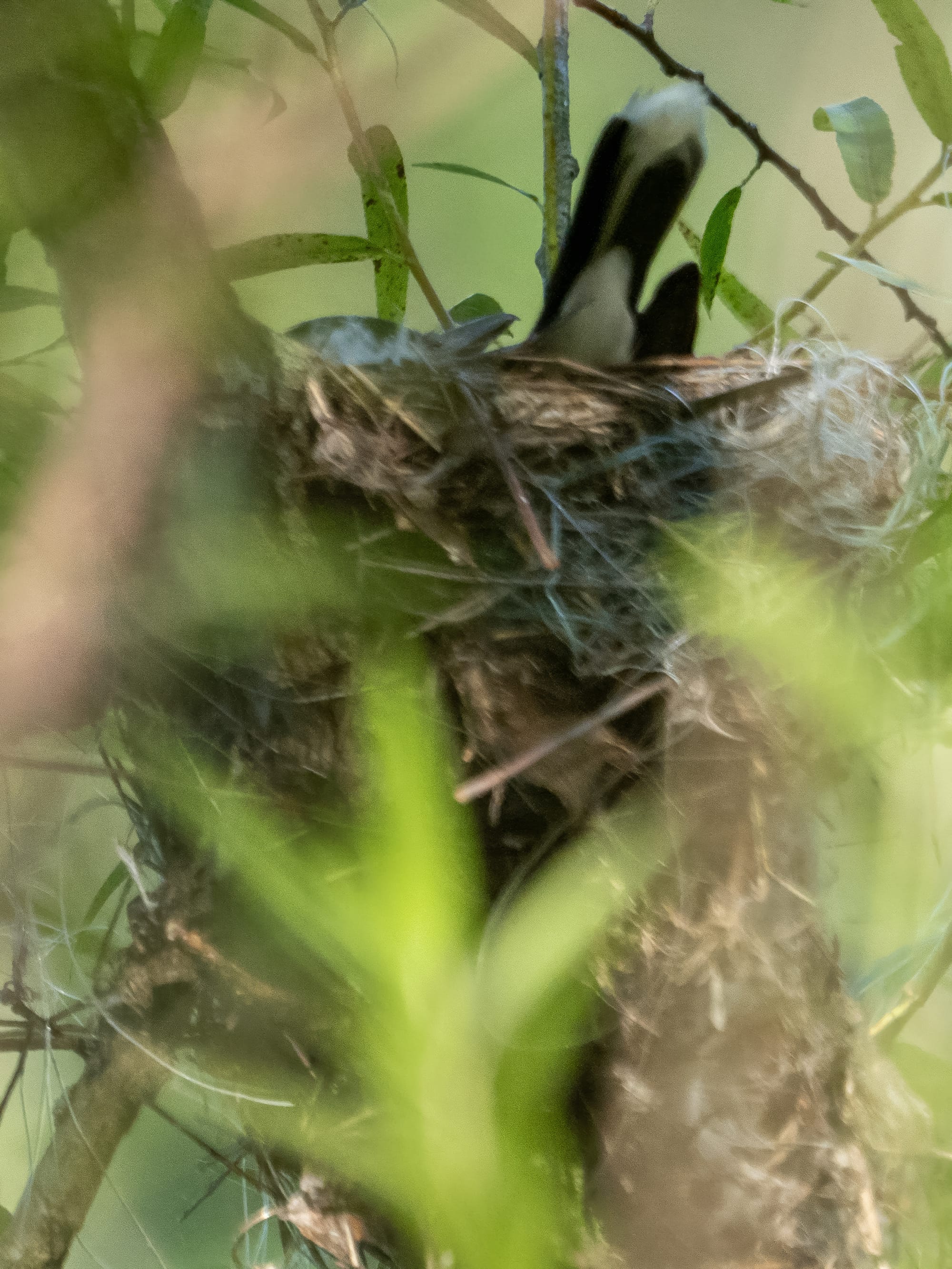 I've been watching a Kingbird nest in a Black Willow tree for nearly a month. Each day I returned expecting to see hatchlings. Normally the eggs would have hatched in 14-18 days, so when nearly a month had gone by and I hadn't seen any nestlings I wondered if something was amiss.