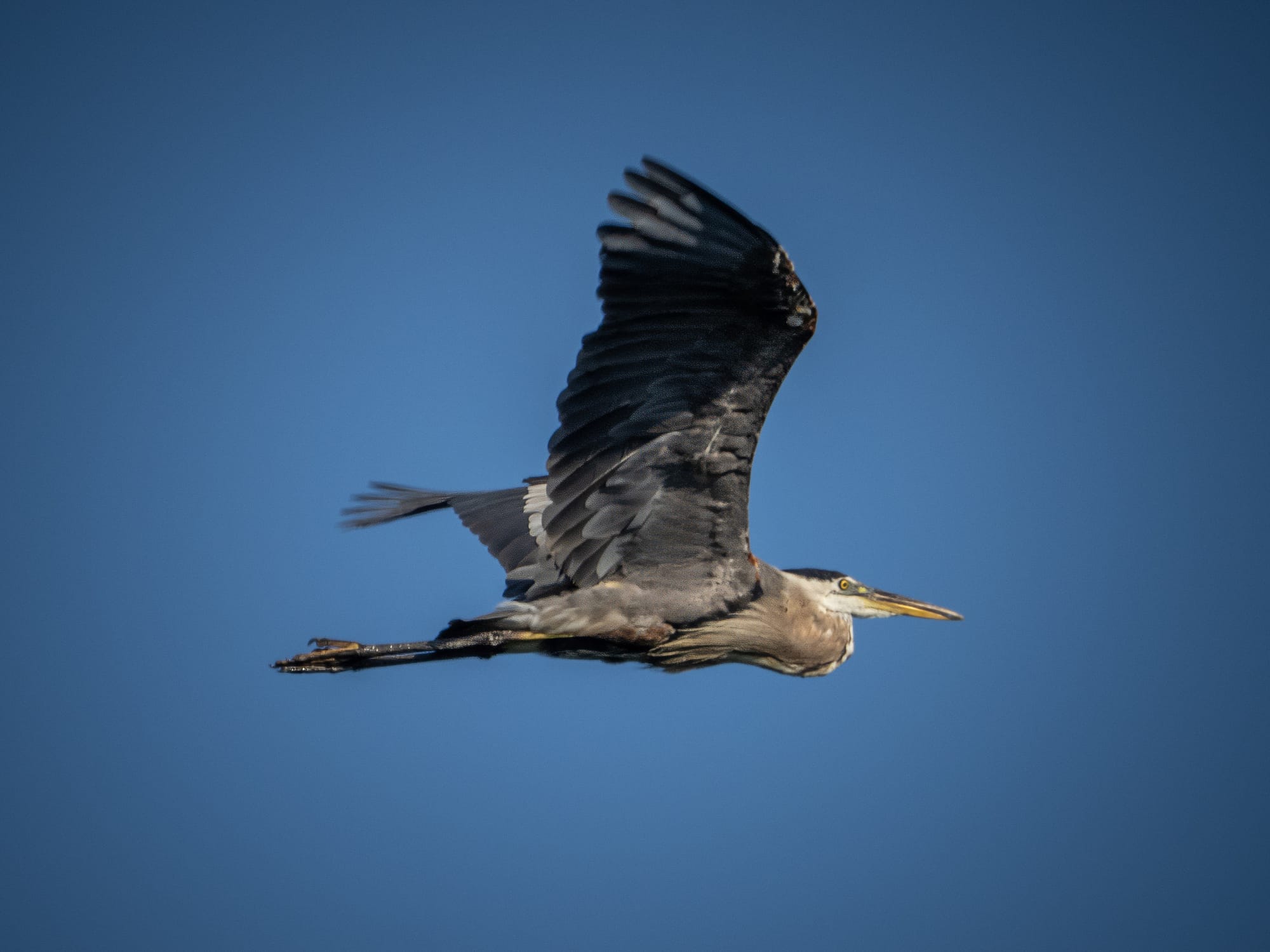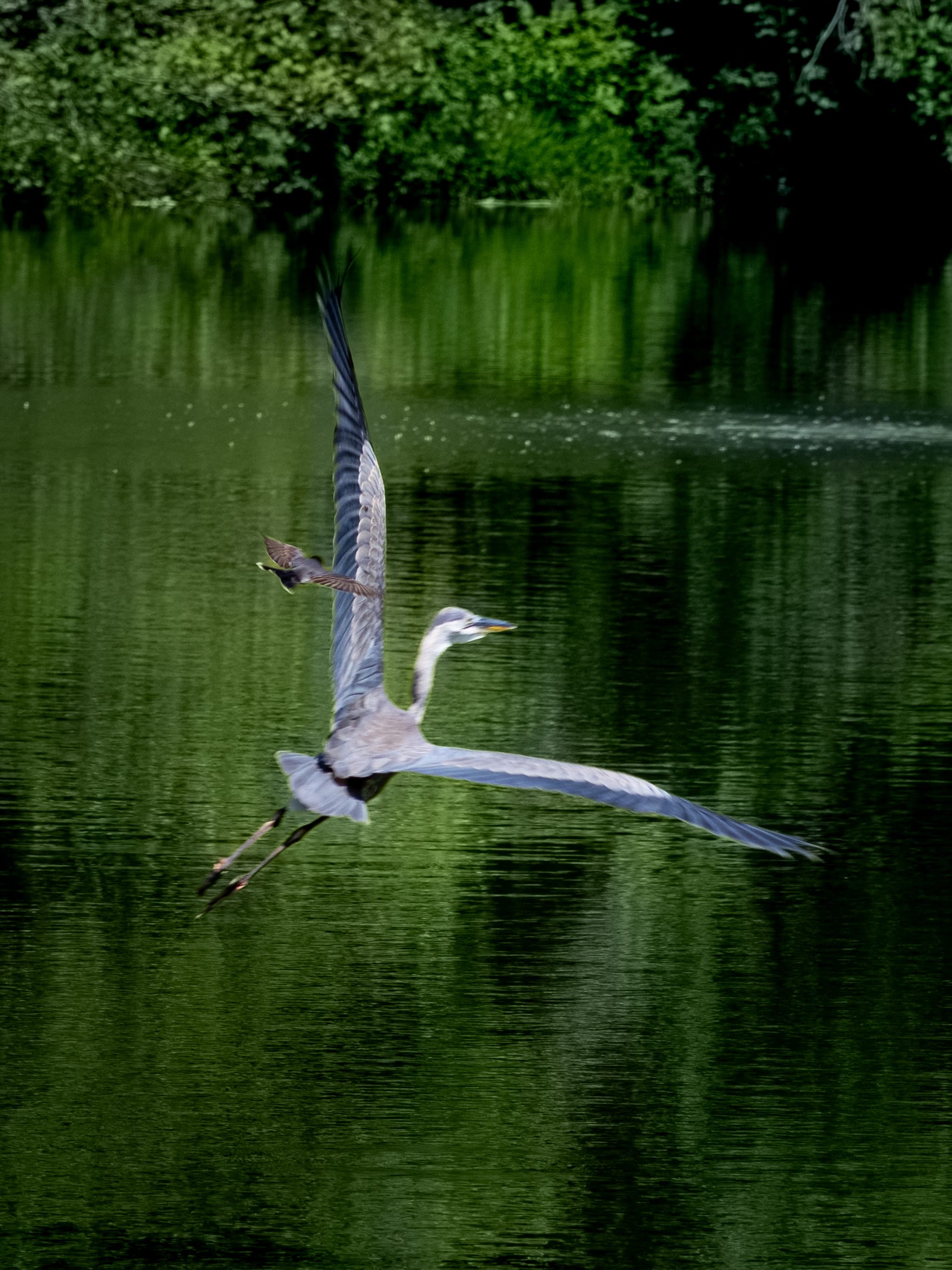 Kingbirds aggressively defend their territories, even against the largest bird they are likely to run across at the park, the Great Blue Heron. I saw the chase pictured above a couple of times this week.