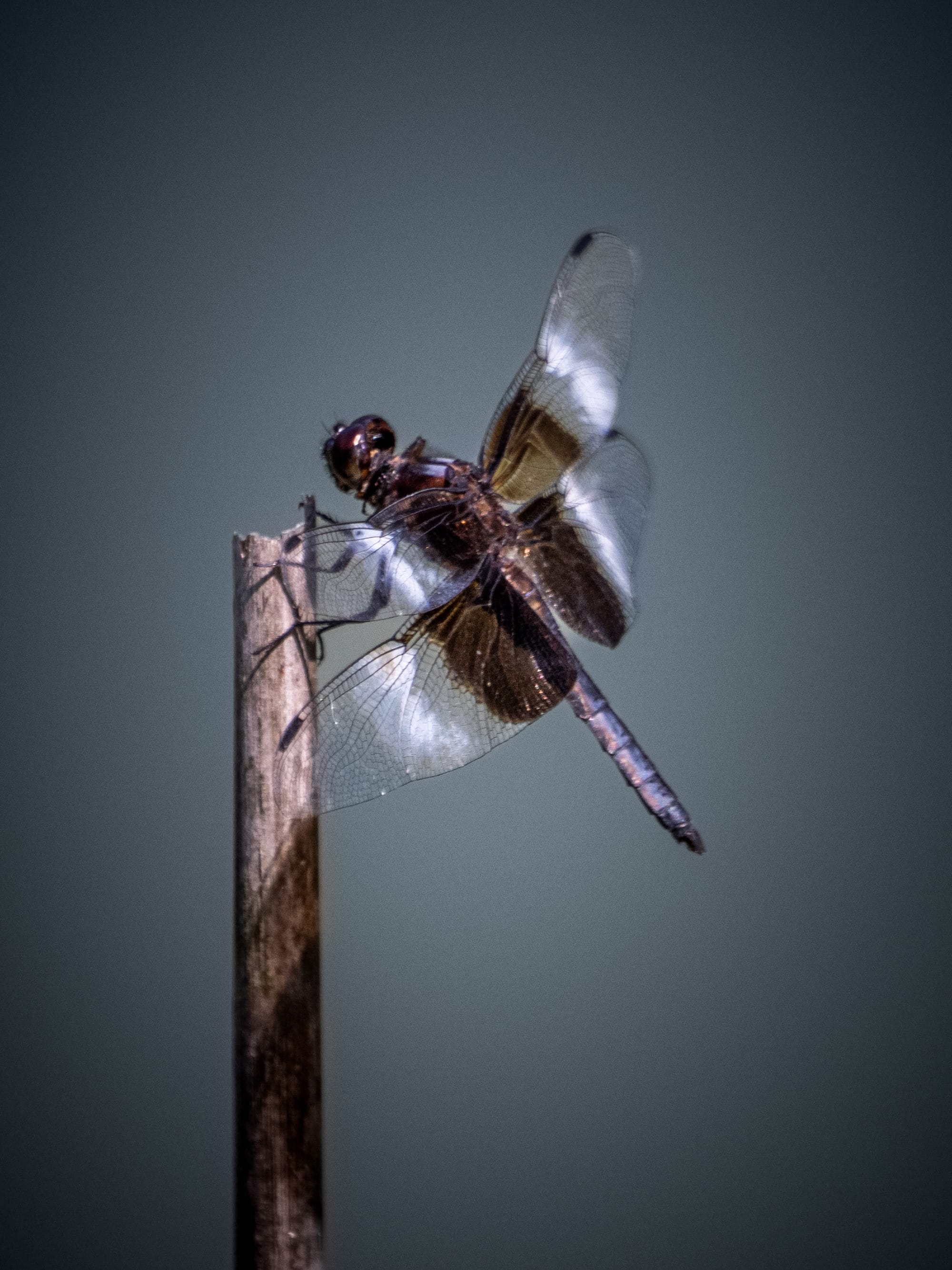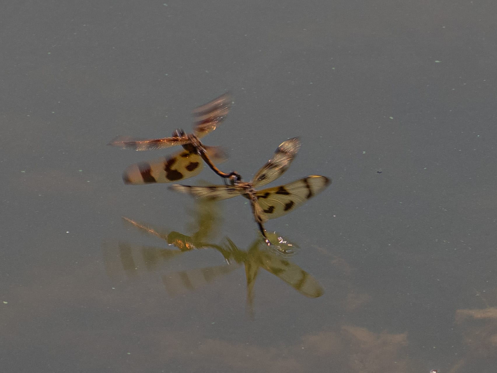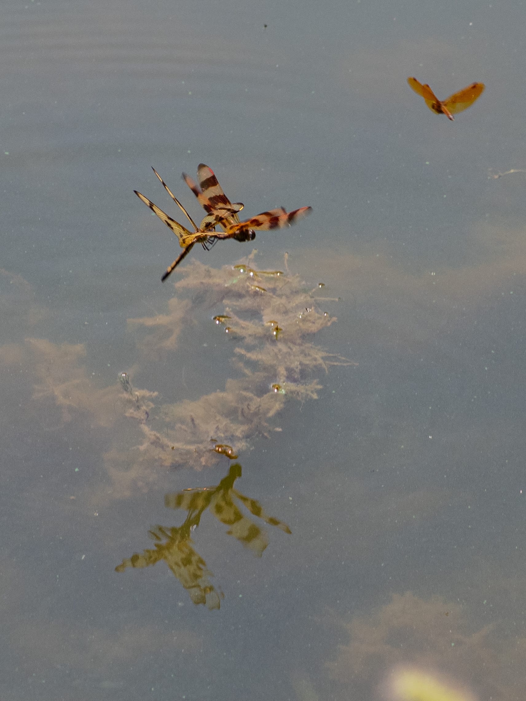 It's approaching peak Dragonfly season. Halloween Pennants ovipositing (laying eggs), Widow Skimmer, Blue Dasher