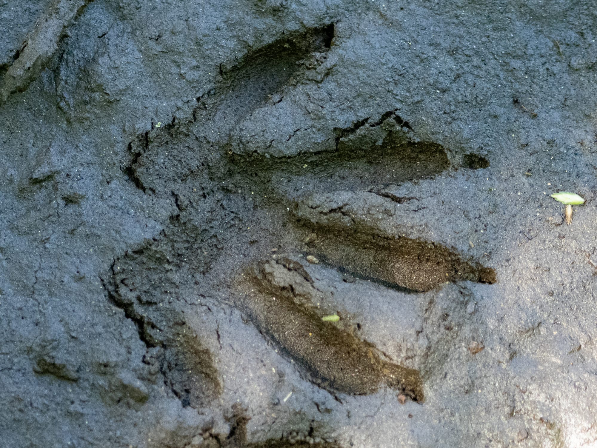 Red-Eared Slider, Raccoon track, Jewel Weed Flower.