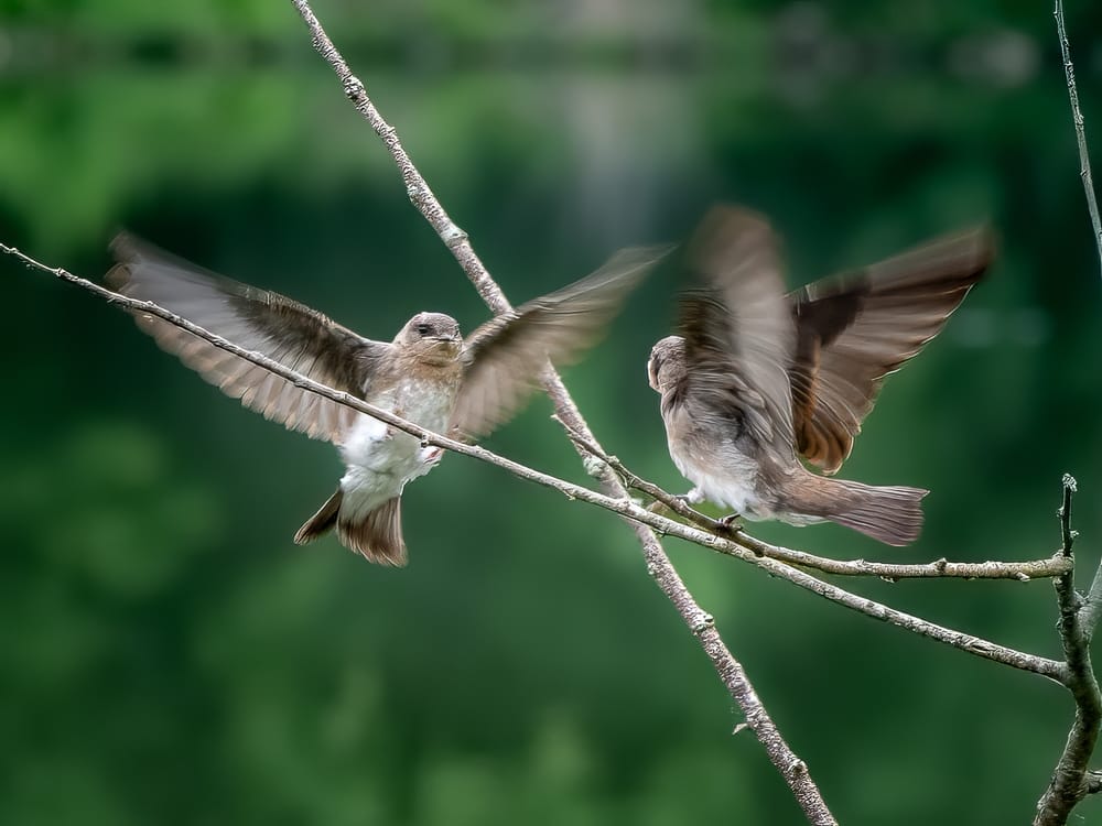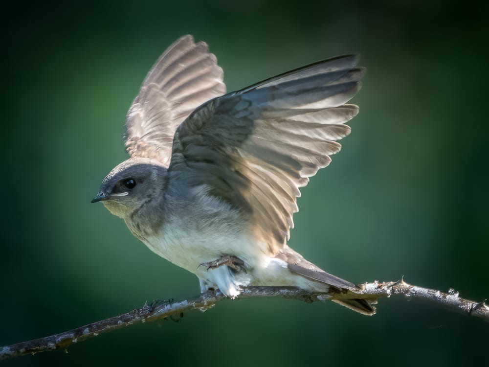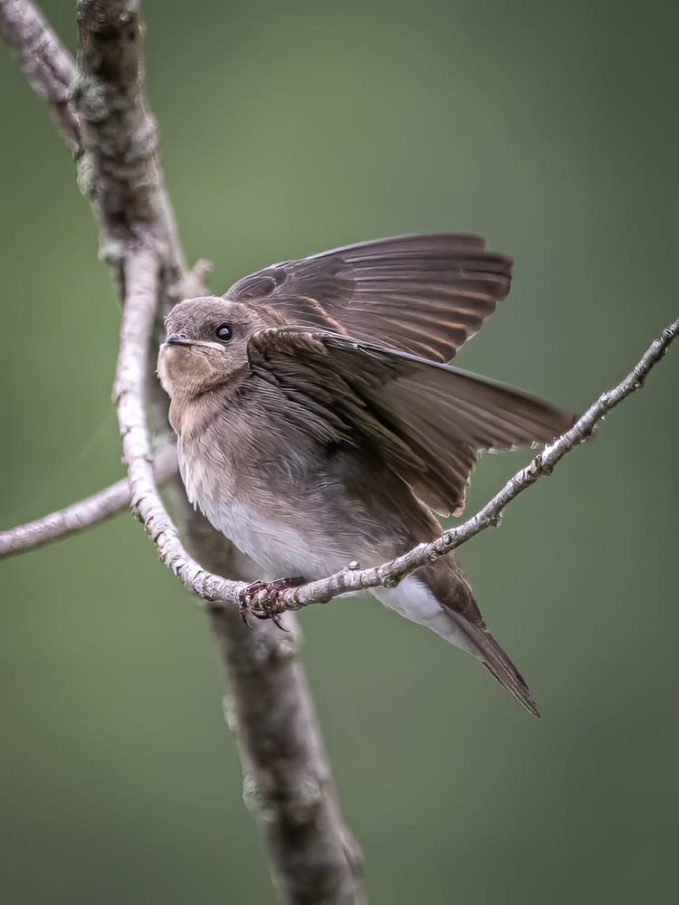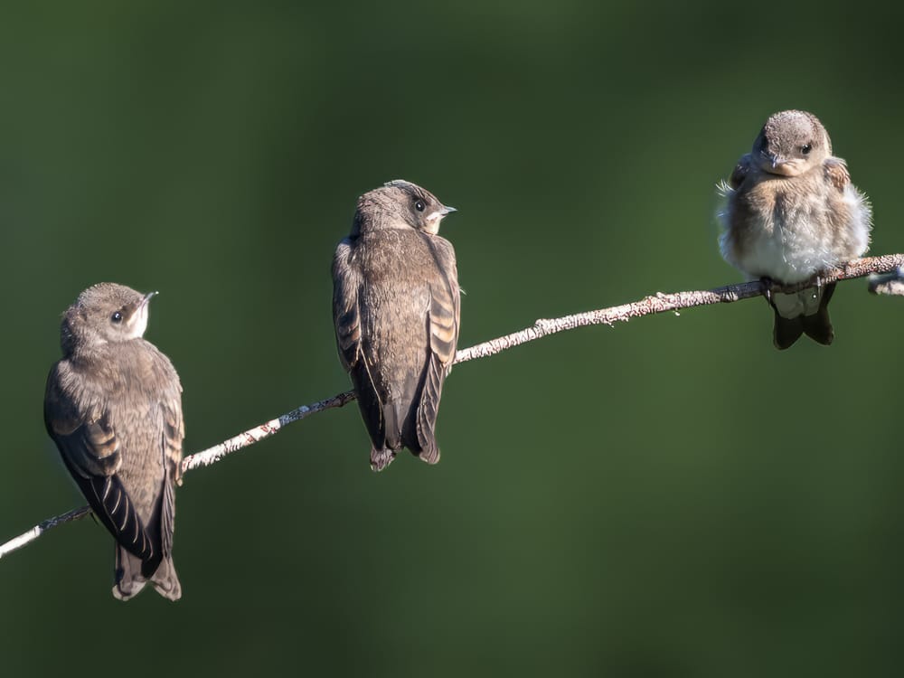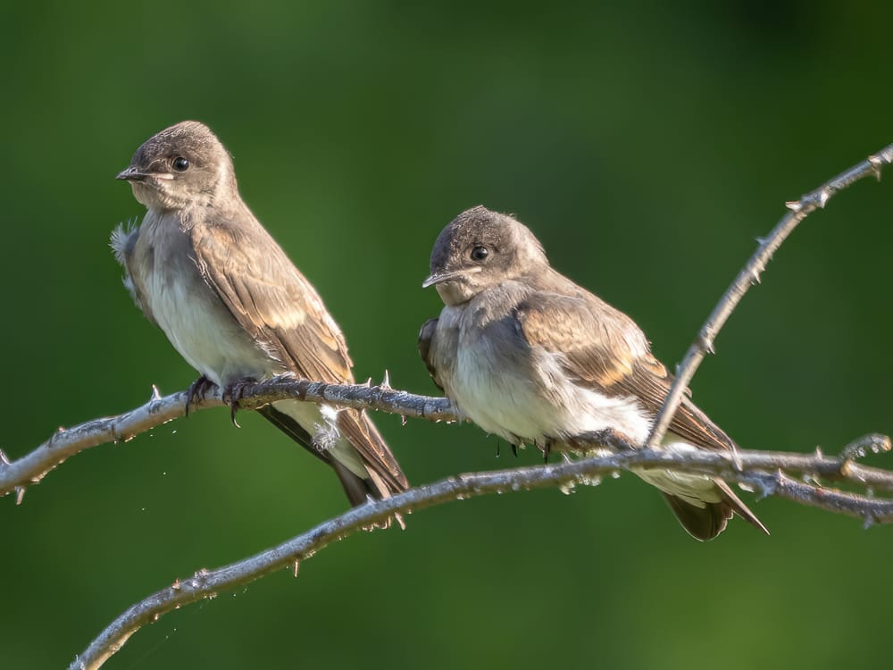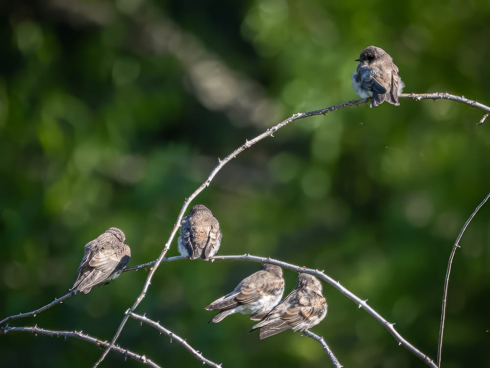A group of fledgling Northern Rough-winged Swallows were perching near the ponds for a acouple of mornings this week. The light brown bars on their wings indicate they are still juveniles (as does their overall appearance and behavior).
