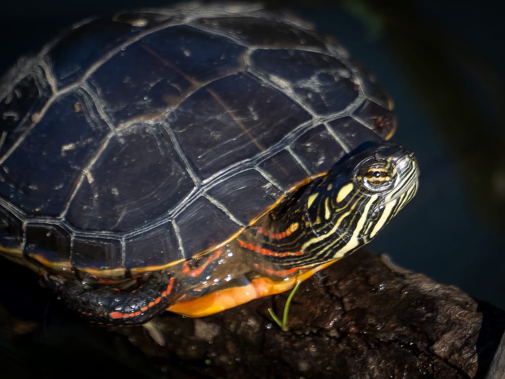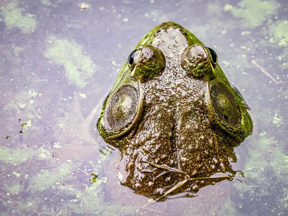 Snapping Turtle, Bullfrog, Painted Turtle side-eyeing me, Lumpy the Red-Eared Slider.