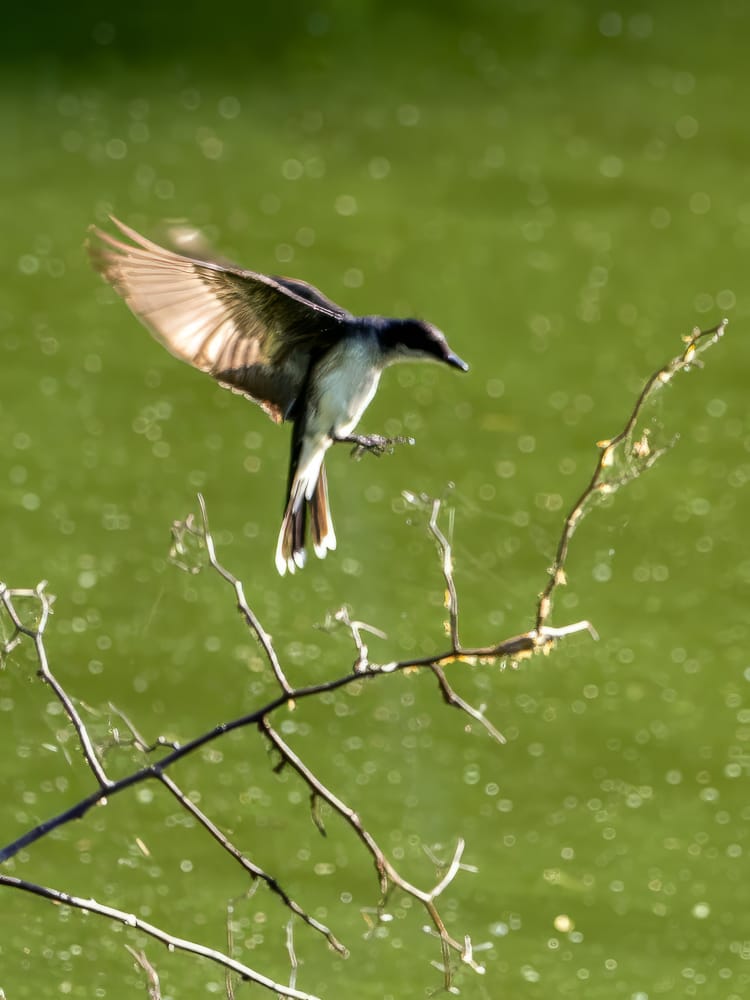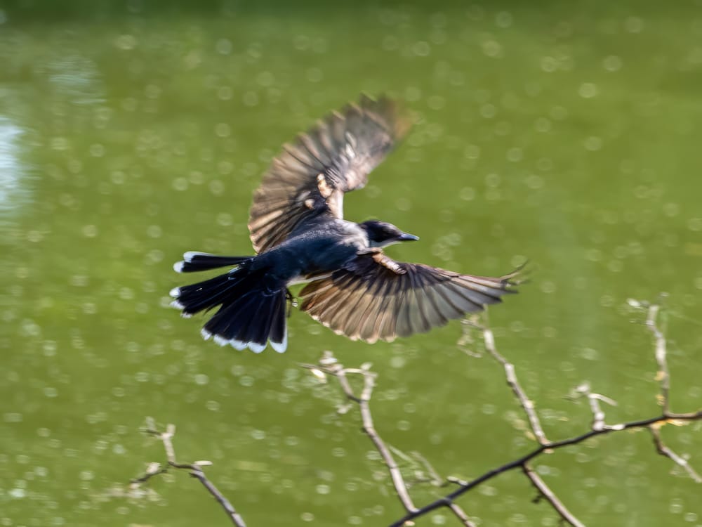 Another look at the Kingbird nest, and a hunting Kingbird - a familiar sight around the ponds this time of year. See more about Kingbirds and other tyrant flycatchers found in the park.