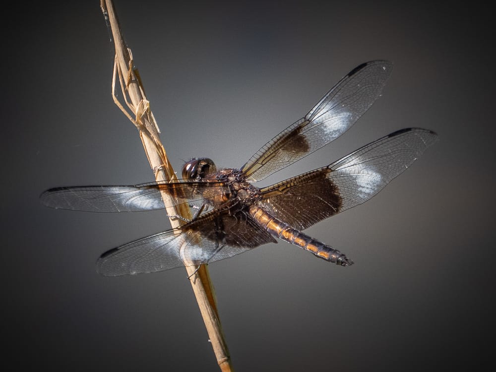 Dragonflies are out in force this week; Eastern Pondhawk, Slaty Skimmer, Eastern Amberwing, Blue Dasher, Widow Skimmer, Cast-off skin of a dragonfly nymph after the final molt. Prince Baskettail.