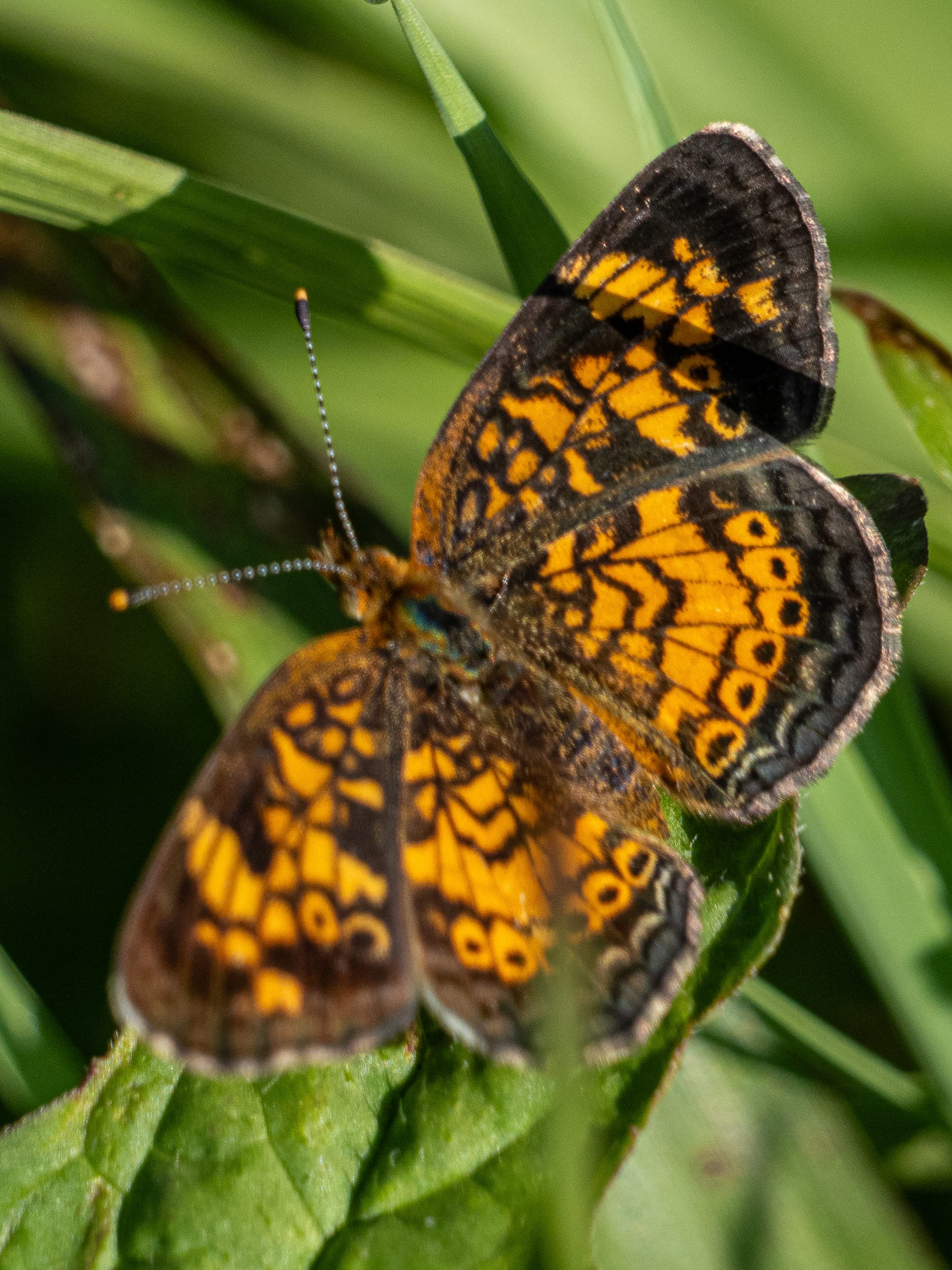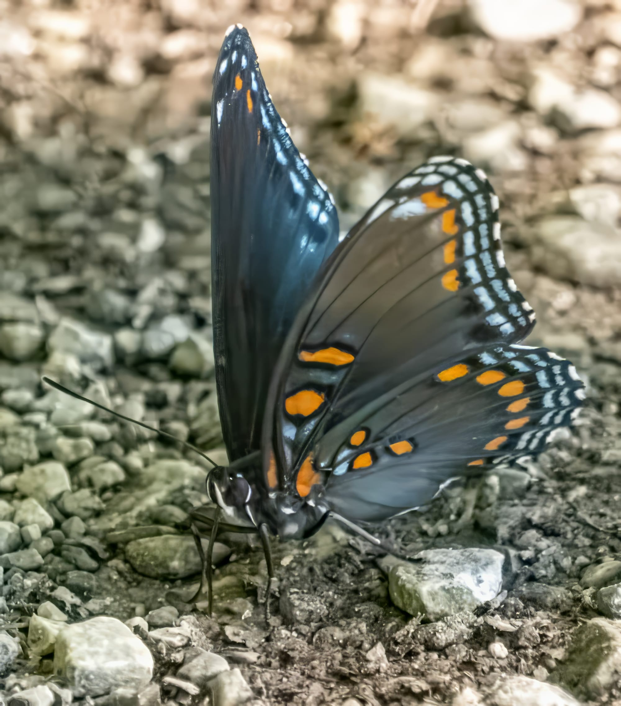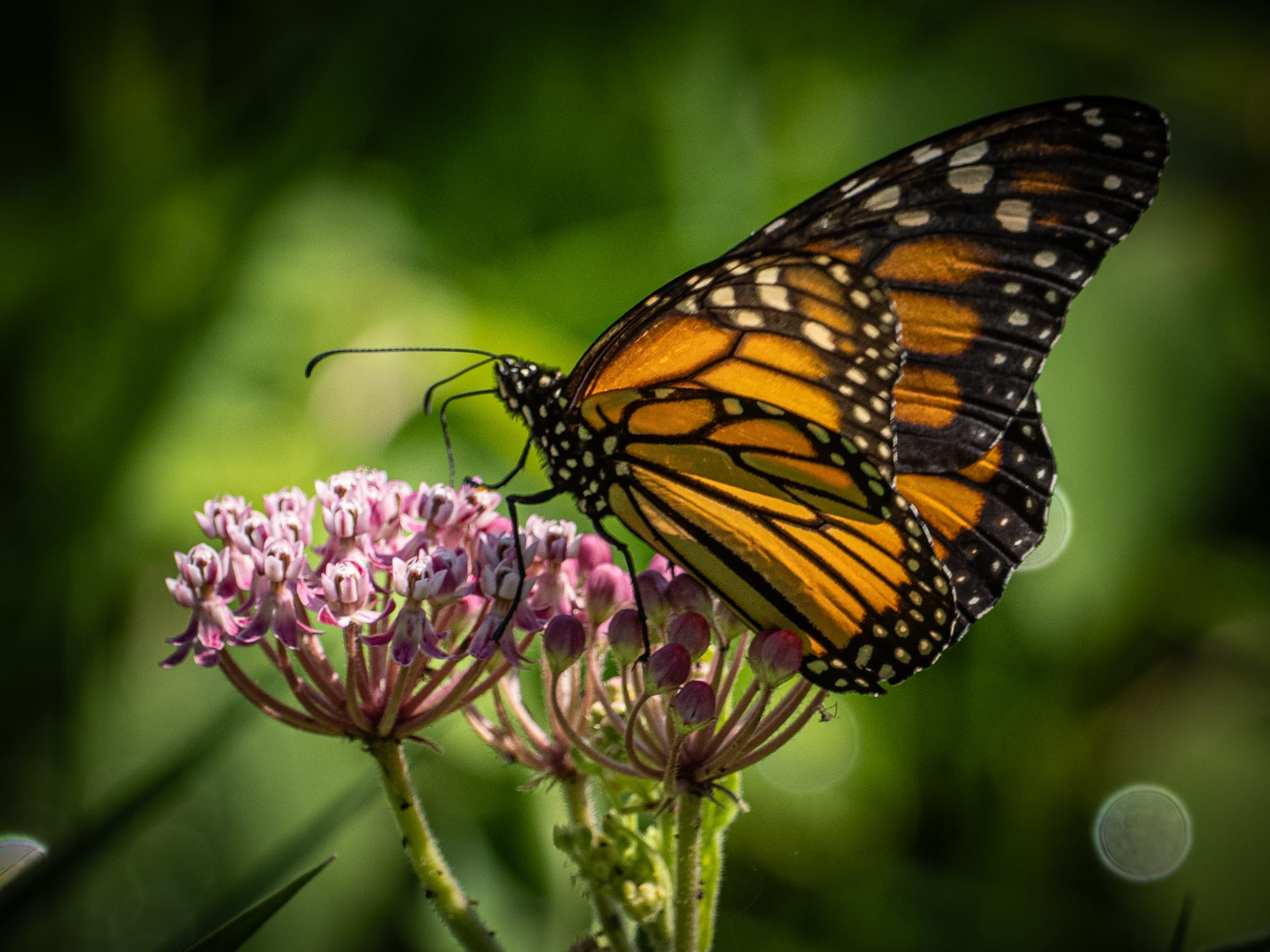 Pearl Crescent, Monarch, Eastern Tiger Swallowtail, and Red-spotted Purple butterflies
