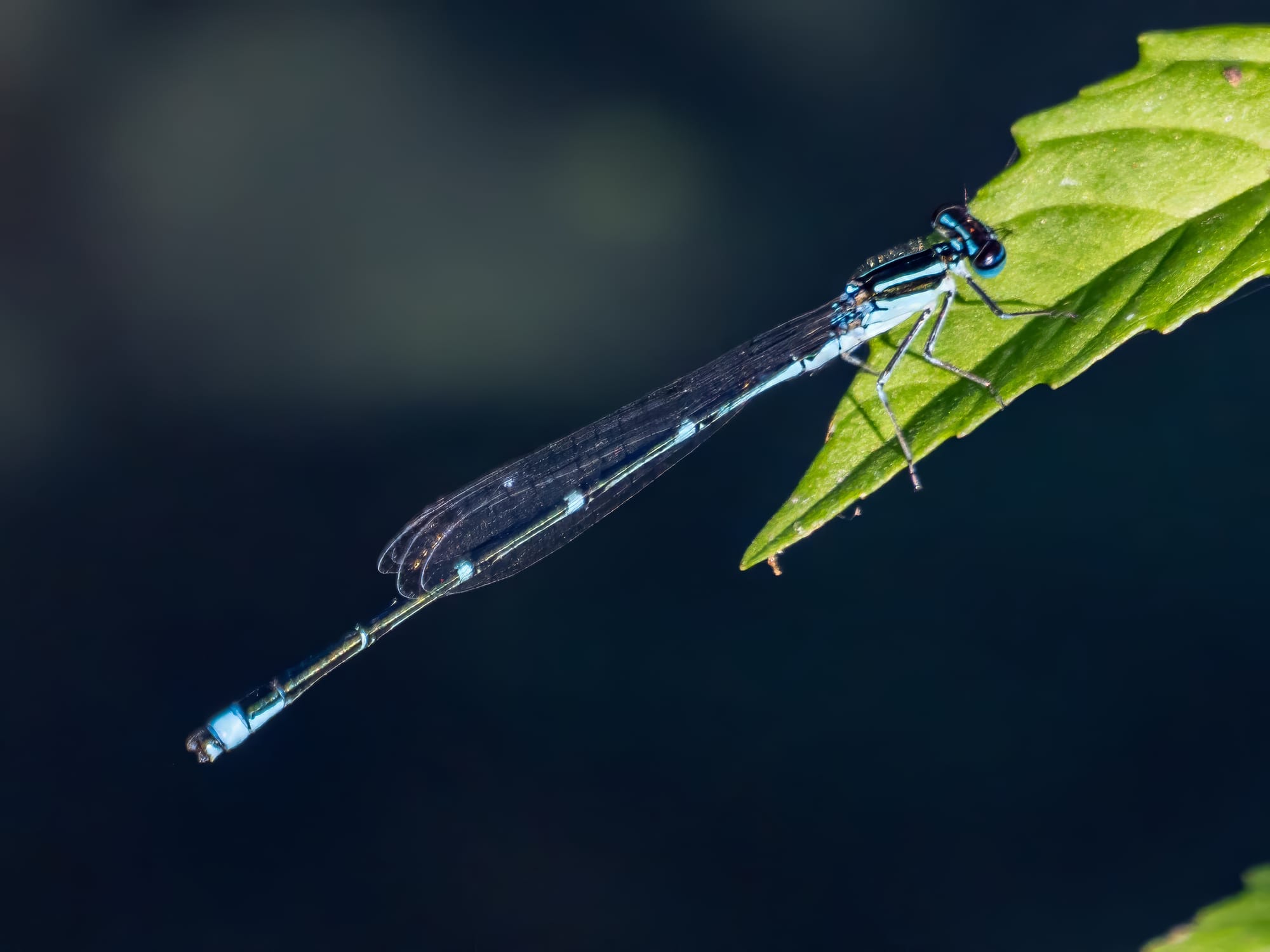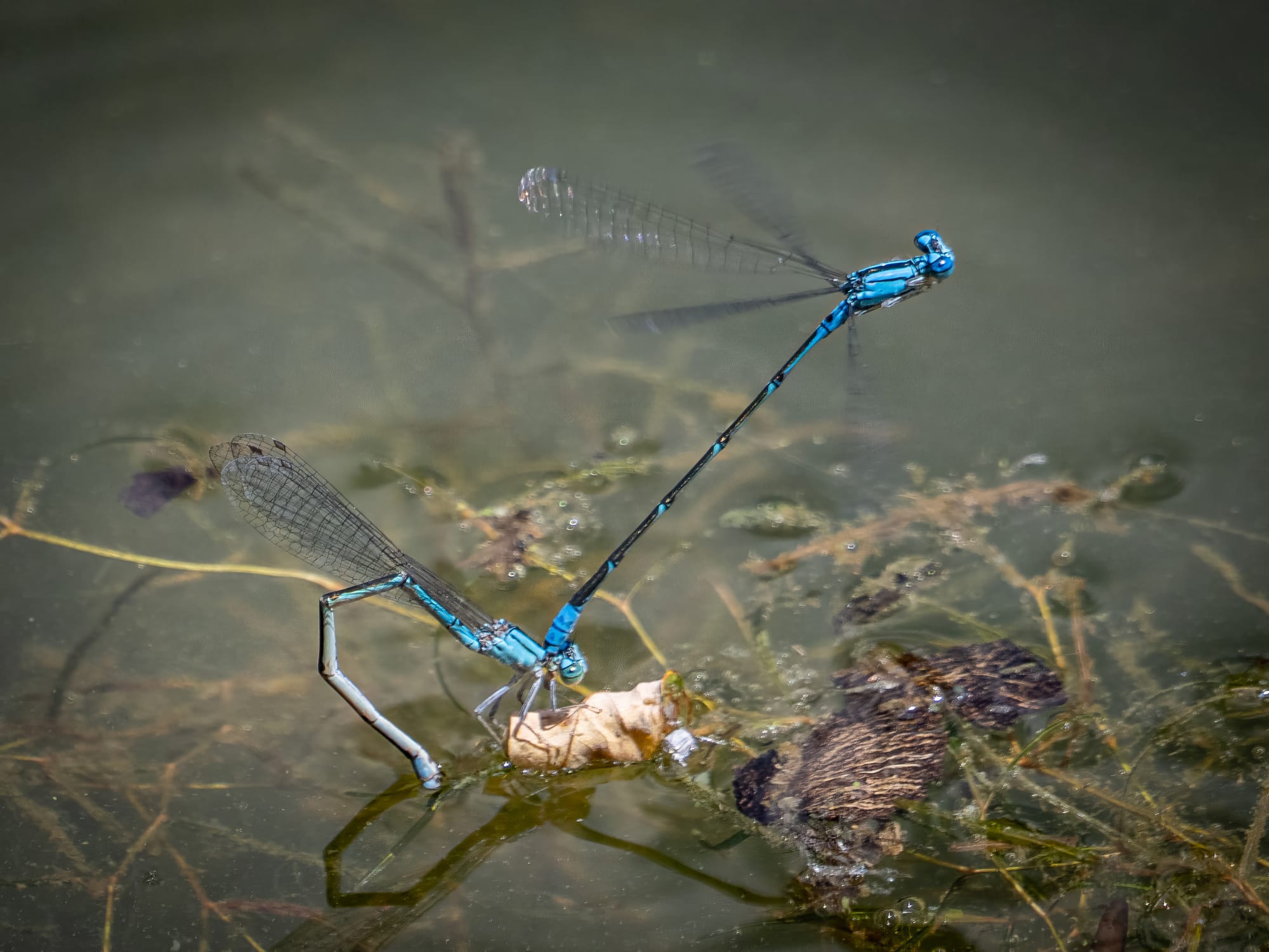 Fragile Forktail, Stream Bluet, and a mating pair of Slender Bluet Damselflies