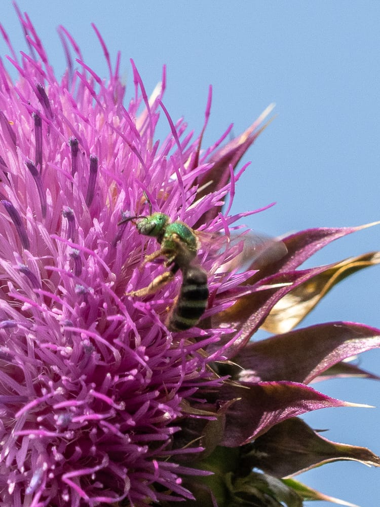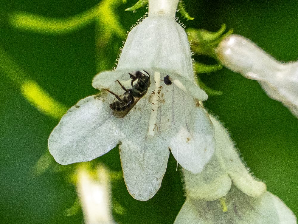 Foxglove Beardtongue being visited by a Confusing Furrow Bee