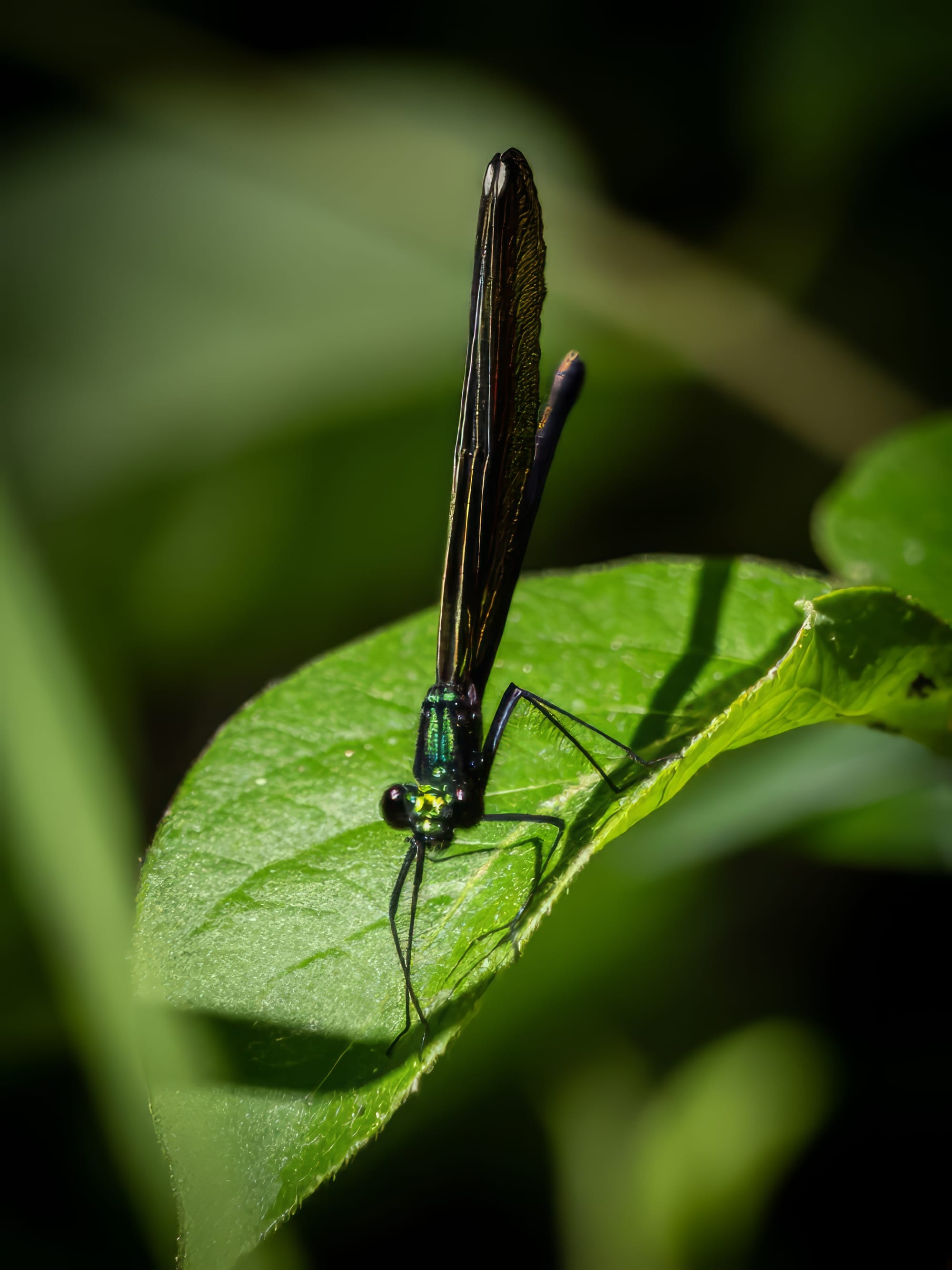 Baskettail dragonfly, Ebony Jewelwing damselfly, A midge I have yet to identify accurately.