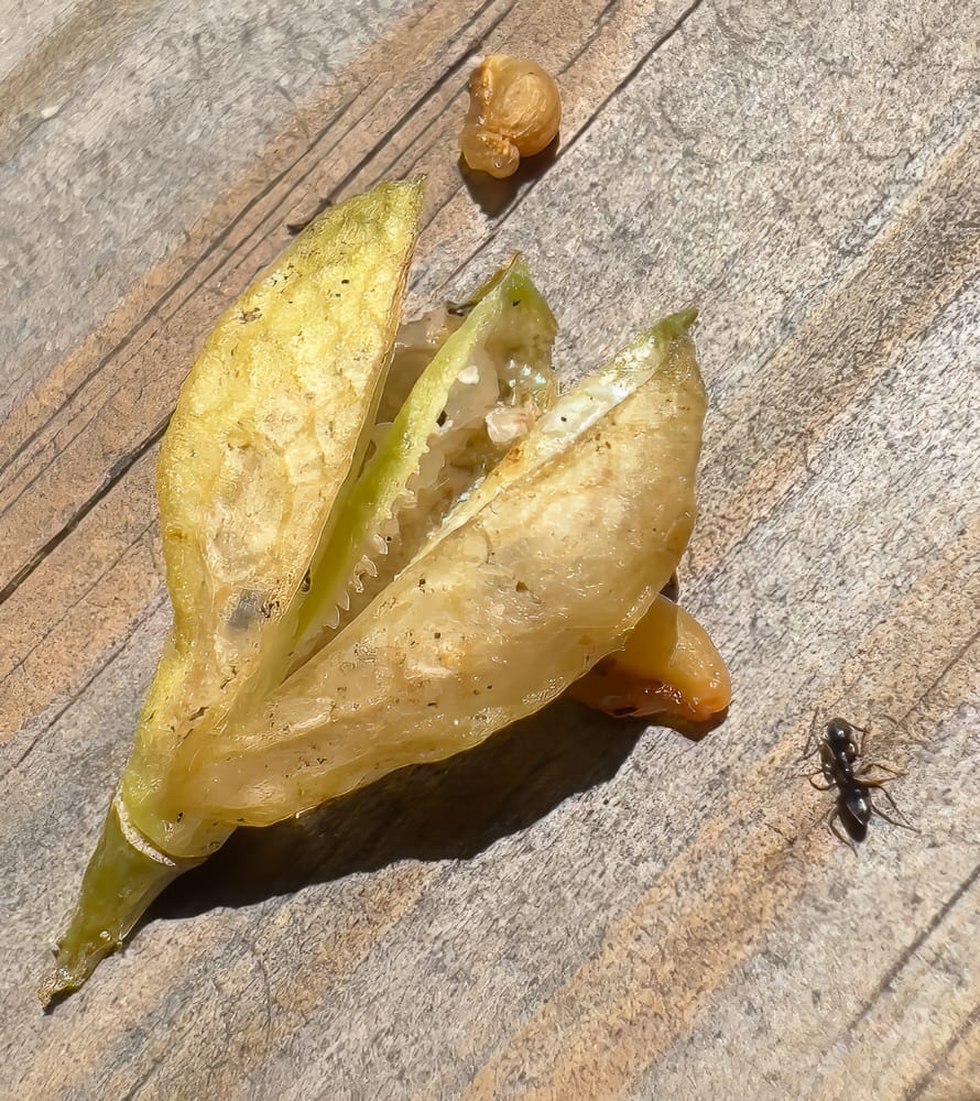 Margined Caligrapher Fly, Two-spotted Bumble Bee, Summer Azure, Spurred Ceratina (a tiny species of carpenter bee). Fully developed se capsule of the Trout Lily (about 1/2 inch long) showing individual seeds (here's more abut Trout Lilies)