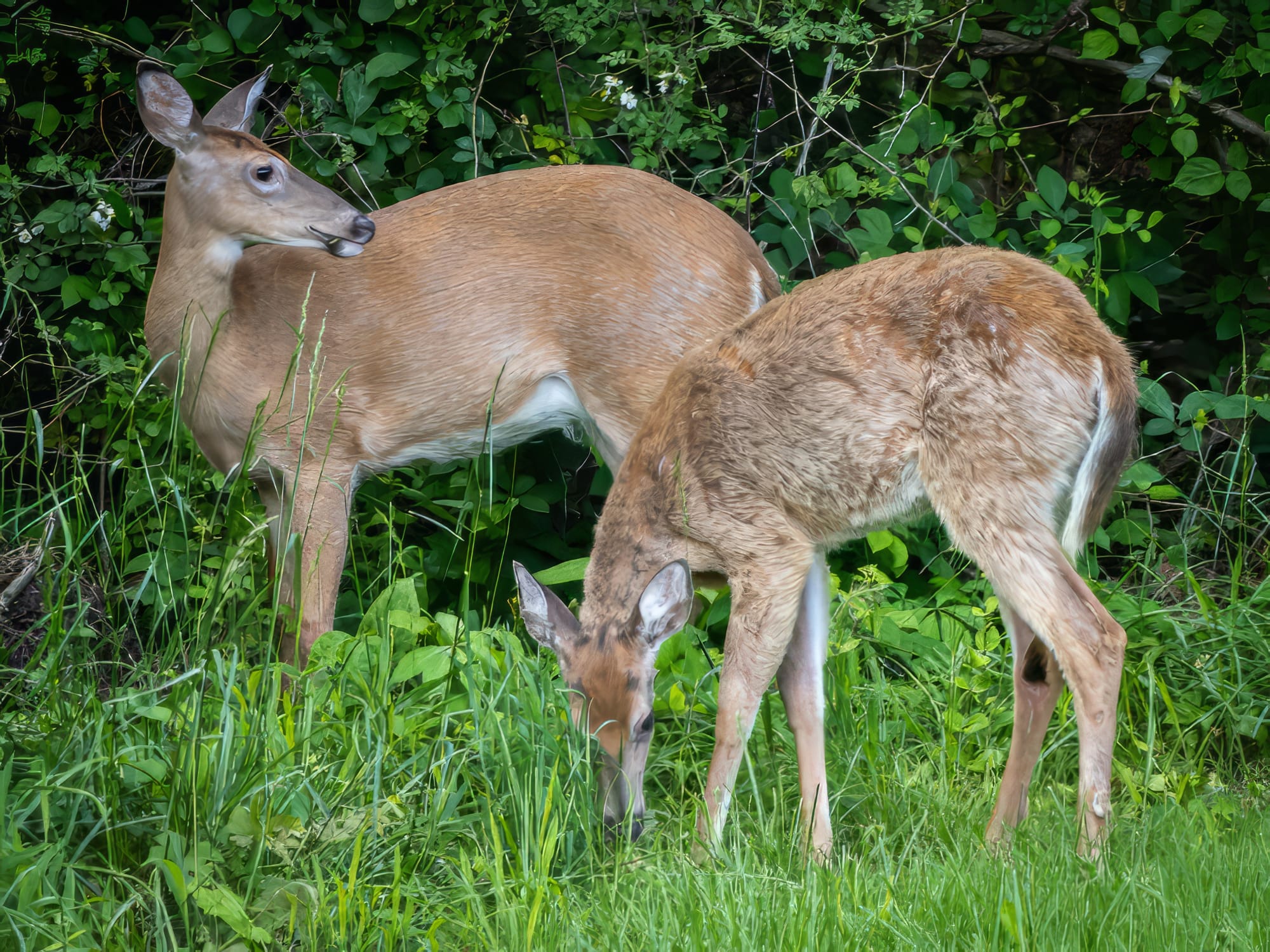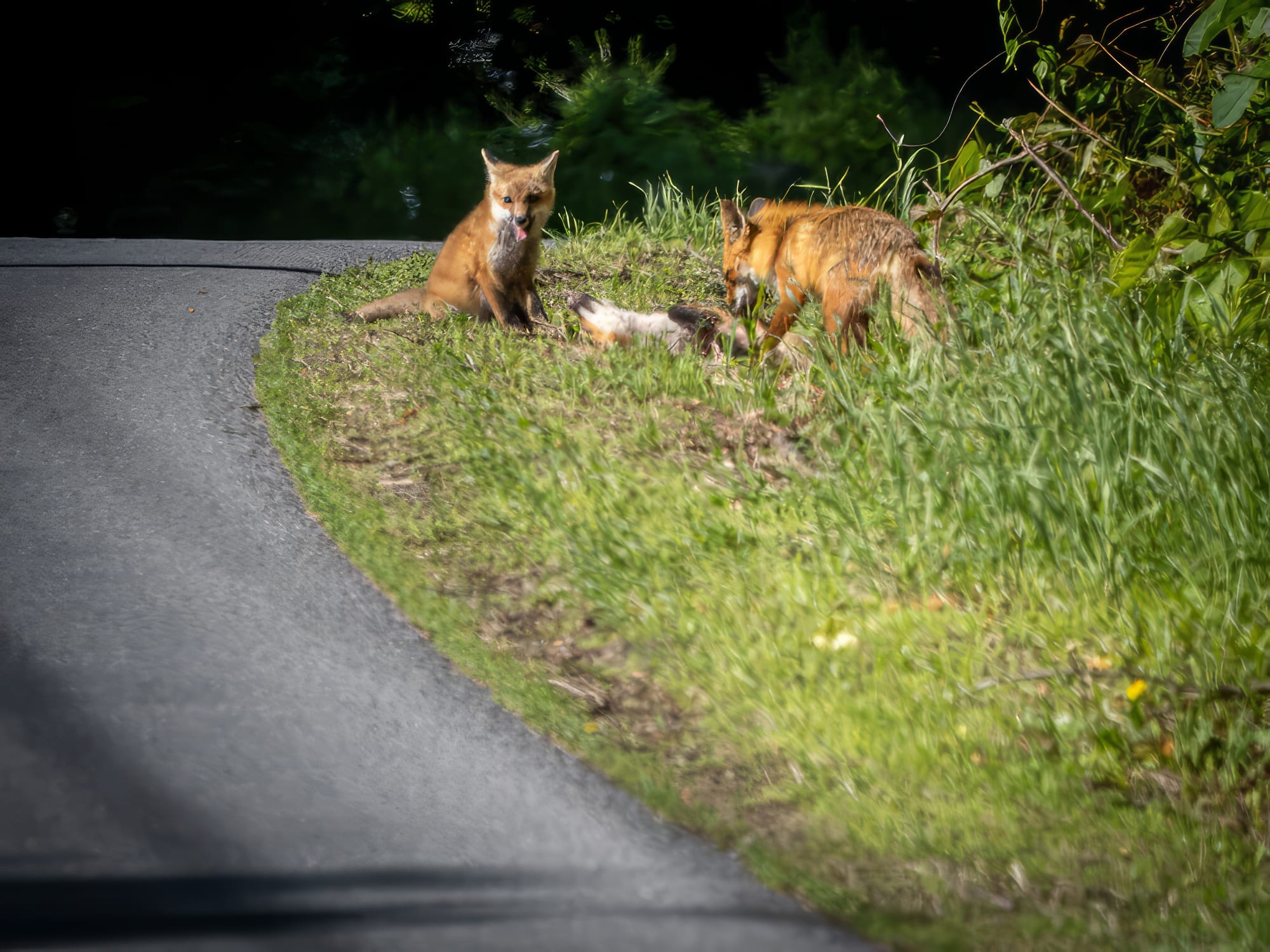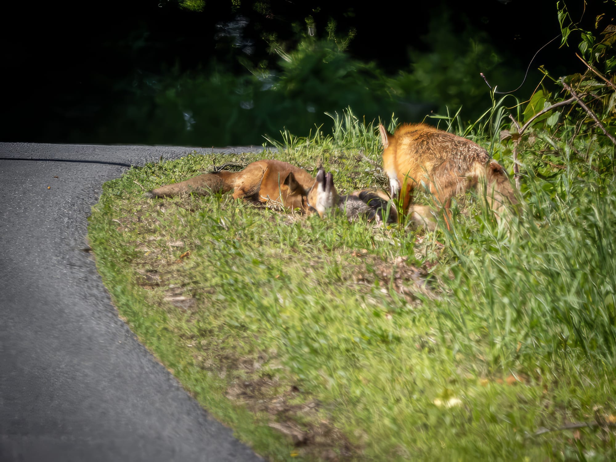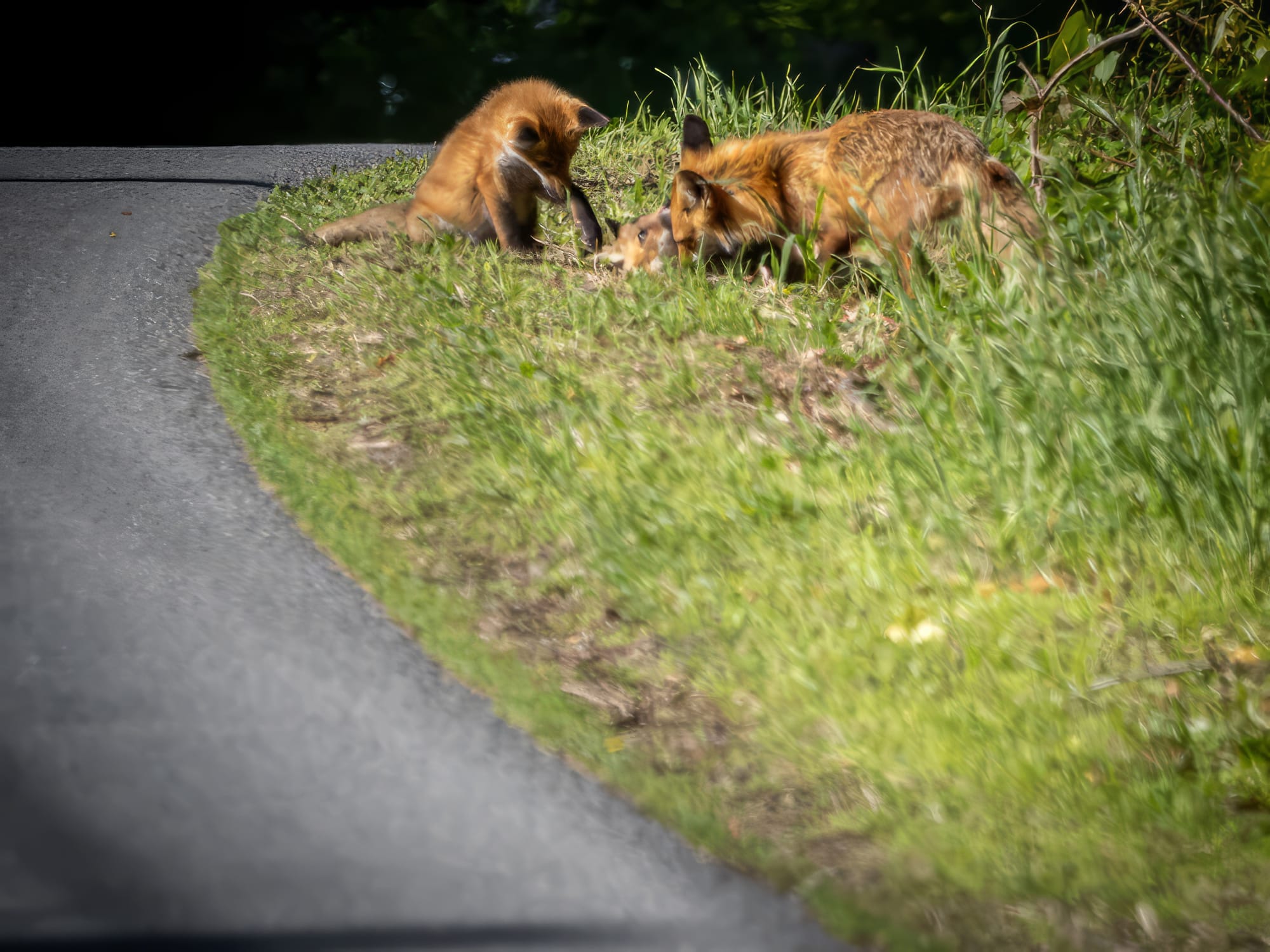 Whitetailed Deer browsing on multiflora rose. Three Red Fox kits spotted cavorting early one morning near the park entrance on Walnut Street.